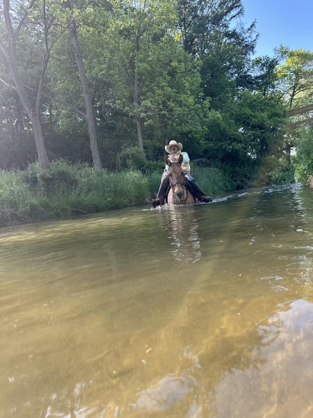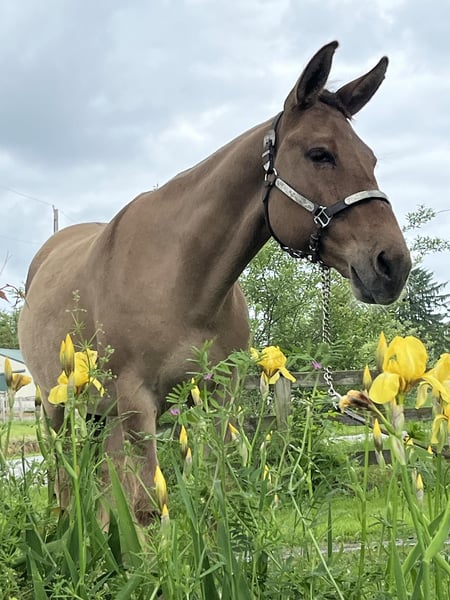 ONLINE-AUKTION Geben Sie Ihre Gebote unter www.PlatinumEquineAuction.com ab. Startgebot $3500 Die Auktion endet am 9. Juni 2024 Brauchen Sie einen neuen Sattel? Schauen Sie sich White Rock Saddles auf unserer Website oder Facebook an! Homer ist ein 9 Jahre altes buckskin/dun john Maultier mit einem liebevollen Gemüt. Er hat eine Stockmaß von 14,1. Wir kennen ihn seit drei Jahren und besaßen ihn die letzten zwei Jahre. Homer wird ohne eigenes Verschulden zum Verkauf angeboten. Dieses Maultier hat Erfahrungen jeder Art. Er ist von Texas über Arkansas bis Pennsylvania gereist. Er wurde ausgiebig durch alle Arten von Gelände geritten und navigiert sicher durch dichte Wälder und tiefe Gewässer. Er reitet in Gesellschaft oder allein und nimmt problemlos an Trailwettbewerben teil. Homer geht am Bein, an der Seite, am Halszügel und ist sanft zur Zäumung. Homer wurde beigebracht, sich zum Auf- und Absteigen hinzulegen, aber er steht auch auf, um auf- und abzusteigen. Zeigen Sie ihm die Nase, und er macht genau das, was Sie wollen. Mit seiner Arbeitseinstellung arbeitet Homer an Rindern, öffnet Tore, pflügt Felder, zieht Kutschen, Ponys und Rennpferde und führt Babys. Er gibt auch Reitunterricht für Anfänger und Fortgeschrittene. Weitere Informationen über seine Arbeit erhalten Sie auf Anfrage. Homer ist ein beständiges Pferd, das jedes Mal gleich reitet. Seine großen Ohren und sein Schnauben werden auf dem Hof vermisst werden. Homer ist ein Unikat. Er befindet sich in Cochranville, PA. Kontaktieren Sie Chris Tejero 484-326-4618 bei Fragen. ONLINE-AUKTION Geben Sie Ihre Gebote unter www.PlatinumEquineAuction.com ab. Startgebot $3500 Die Auktion endet am 9. Juni 2024. Brauchen Sie einen neuen Sattel? Schauen Sie sich White Rock Saddles auf unserer Website oder Facebook an!