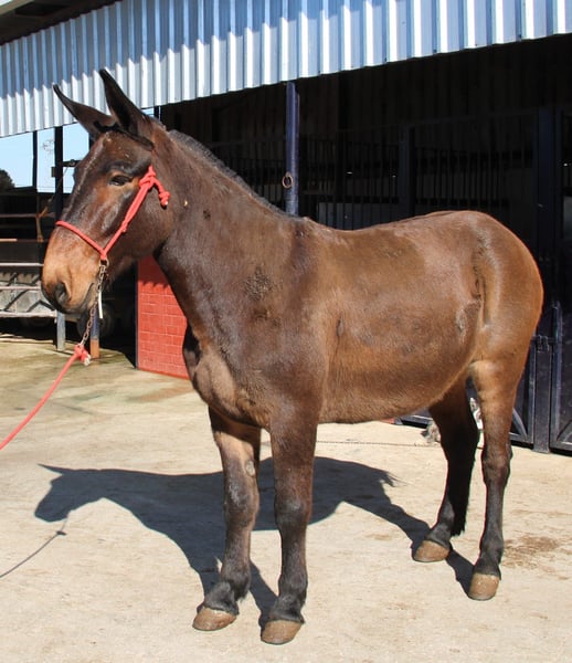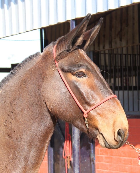 All of our noble mules have been ridden and are safe for traffic, not skittish, and regularly participate in Romerías and Fiestas (Spanish festivals), so they are accustomed to noise and commotion. The mother is a Percheron mare, which explains his sturdy build. He is gentle with the rider, making him suitable for relaxed rides. If desired, he can stay with us for further training and schooling. International transport can be arranged.