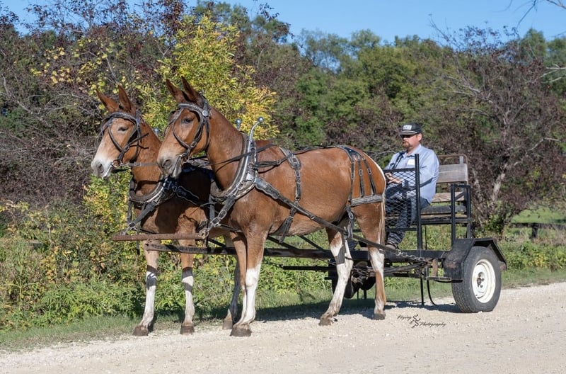 ⚜️ 𝓽𝓱𝓮 𝐇𝐨𝐫𝐬𝐞𝐦𝐚𝐧'𝐬 𝓢𝓱𝓸𝔀𝓬𝓪𝓼𝓮⚜️ Happening now thru MONDAY | DECEMBER 1st - Available EXCLUSIVELY on HorseBid's website! For more details and to register visit: www.Horsebid.com CONSIGNOR CONTACT: Rafter D Mules 651-303-7056 LOCATION: Hastings MN BREED: Mule REGISTERED: No COLOR: Red and white paint HEIGHT: 15.3 AGE: 10 GENDER: John Mule This team of mules have been there and done that! I have used them for dragging the arena to Sunday wagon rides for the family. They have also been used on wagon trains and on the ranch to feed cattle. One person can harness and hook them. They step over the pole and stand while you hitch them up. They have plenty of pull if you need to work a field or drag logs. They also ride the very best. They will ride alone or with the group. They are easy going under saddle and have been used in a string to put dudes on. They ride like saddle mules not driving mules. They are great with there feet. I have also used them to pack stuff into the hills. They are a one of a kind Fancy team that will fit just about everyone. Look no farther if you want two mules that can do it all. They are parade ready to ride or drive. Come to the ranch and try them out. They have been my personal team for awhile and I have known them and seen them work the last 5yrs.