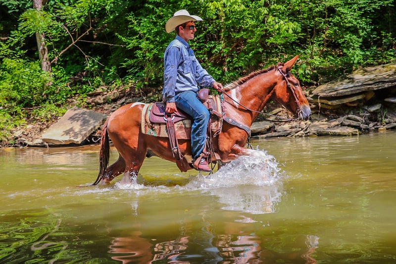 ONLINE AUCTION Place your bids at www.PlatinumEquineAuction.com Starting Bid $3500 Auction ends July 14th, 2024 Need a new saddle? Check out White Rock Saddles on our website or Facebook! This is “Daniel”, a true one of a kind RED DUN & WHITE JOHN MULE that is well trained, gentle, and civilized. This mule is 11 years old and stands 14.2 hands tall. He has a very large resume and has been there and done that. He has been ridden English and Western. He has been to the open shows and shown by a novice rider. He will collect up nicely and slow jog or he will move out into an extended trot. He is soft in the bridle and will break at the poll. He has been used for ranch work in the pasture sorting and pushing cattle by an older gentleman. He has been on the moonlit rides and is sure footed in rough country. He has been shot off of and used for hunting in the mountains. He has also been used to lead a pack string. He has an extremely comfy and easy to sit canter. He catches his leads, lopes circles, and stops nicely. He will back up, move off of leg cues, and he has a true one hand neck rein. He stands to mount, tack, and groom. He picks up all four feet and handles his ears with no issues. He takes his time in unsure footing, unloads in new territory and rides off quiet, and has no buck and no hump. This mule loads, bathes, hauls, and has the best ground manners. He rides out alone with confidence and will bring up the rear or lead the pack. He is traffic safe, good with dogs, and will go anywhere you point him without hesitation. He will ride bareback, double, and in just a halter and leadrope. Don’t miss out if you want a mule that will make you look like a mule skinner even if you aren’t. He’s obedient, kind, personable, and loves to trail ride. Contact HR Horses Erin 304-238-4155 with any questions or to set up a time to come see him in Flemingsburg, KY. BIN offers are considered. Thanks! ONLINE AUCTION Place your bids at www.PlatinumEquineAuction.com Starting Bid $3500 Auction ends July 14th, 2024 Need a new saddle? Check out White Rock Saddles on our website or Facebook!