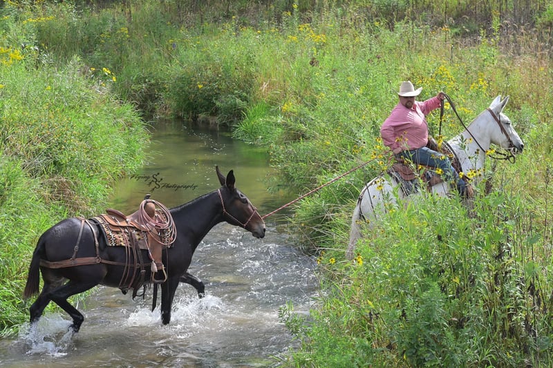 🍁𝒕𝒉𝒆 𝐅𝐀𝐋𝐋 𝑺𝒑𝒆𝒄𝒕𝒂𝒄𝒖𝒍𝒂𝒓🍁 Happening now thru MONDAY | SEPTEMBER 22nd - Available EXCLUSIVELY on HorseBid's website! For more details and to register visit: www.Horsebid.com CONSIGNOR CONTACT: Rafter D Mules 651-303-7056 LOCATION: Hastings, MN BREED: Mule REGISTERED: No COLOR: Gray HEIGHT: 15 AGE: 12 GENDER: John Mule Blue is a handy mule who we are proud to offer. He has been in our personal string for several years! Blue has a been there, done that type of ride. He will be the same way every time you get on him, no matter how much time he has off. Blue is suitable for any age rider with any level of experience. You can trust him to be honest with everyone you put on his back. Blue is accustomed to working in the arena and on the ranch, never shying from a hard day's work. He has been ridden across rugged mountain terrain, on trails, across downed timber, through large creeks, and through every ditch or steep embankment that you can find. Blue is easy to bridle, groom, clip, and tack up. Blue is not ear shy and is a gentleman when having his feet handled. He will stand to be mounted from a mounting block or the ground. If you're in search of a mule that the entire family can enjoy but is still handy enough to go out and do a job, you have found him! If you have any questions about Blue or would like to meet him prior to the auction ending, please contact Dillon at Rafter D Mules 651-303-7056.