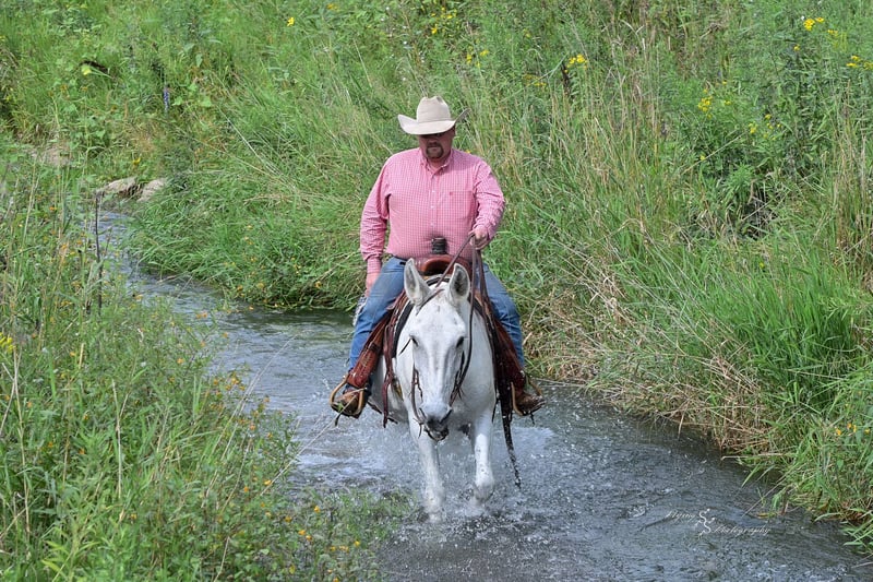 🍁DER HERBSTLICHE SPEKTAKEL🍁 läuft jetzt bis MONTAG, 22. SEPTEMBER – exklusiv auf der Website von HorseBid! Weitere Details und Anmeldung unter: www.Horsebid.com VERKÄUFERKONTAKT: Rafter D Mules, 651-303-7056 STANDORT: Hastings, Minnesota RASSE: Maultier Zugelassen: Nein FARBE: Grau HÖHE: ca. 15 Hand ALTER: 12 Jahre Geschlecht: Hengst-Maultier (John Mule) Blue ist ein vielseitiger Maultier, das wir mit Stolz anbieten. Er gehört seit mehreren Jahren zu unserer privaten Herde! Blue ist der Typ, der immer zuverlässig ist. Er wird bei jeder Reitgelegenheit gleich bleiben, egal wie viel Zeit seit dem letzten Ritt vergangen ist. Blue ist für Reiter aller Altersgruppen und Erfahrungsstufen geeignet. Man kann ihm vertrauen, dass er ehrlich ist und auf jeden Reiter, der auf seinem Rücken sitzt, vertrauensvoll reagiert. Er ist sowohl im Reitplatz als auch auf der Ranch gewohnt zu arbeiten und scheut keine harte Arbeit. Blue wurde bereits in unwegsamem Gebirge, auf Trails, durch umgestürztes Holz, große Flüsse und über alle Gräben oder steile Abhänge geritten, die man sich vorstellen kann. Er ist leicht bridlegerecht, gepflegt, gekürzt und eingeritten. Blue ist nicht empfindlich gegenüber Geräuschen an den Ohren und verhält sich beim Umgang mit den Hufen stets vorbildlich. Er lässt sich problemlos vom Boden oder einer Aufstiegshilfe aus satteln. Wenn Sie nach einem Maultier suchen, das die ganze Familie genießen kann und das trotzdem zuverlässig für Arbeitseinsätze ist, haben Sie es gefunden! Bei Fragen zu Blue oder wenn Sie ihn vor Ende der Auktion persönlich kennenlernen möchten, wenden Sie sich bitte an Dillon bei Rafter D Mules unter 651-303-7056.