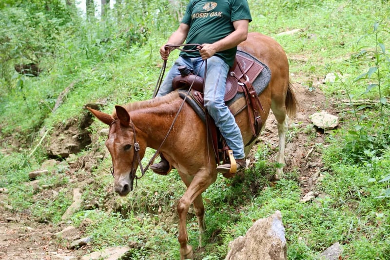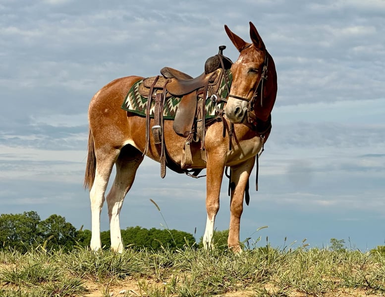 ONLINE AUCTION Place your bids at www.PlatinumEquineAuction.com Starting Bid $3500 Auction ends September 1st, 2024 Need a new saddle? Check out White Rock Saddles on our website or Facebook! Luna is a 12 year old, 15 hand Molly mule. She is excellent on the trails with countless miles ridden. If you point her nose, she will go. She crosses logs, slides down banks, goes through water with ease, and crosses bridges. For the more timid riders, she will follow along with the group and not take a misstep. We have had kids trail riding her and several first time riders that she gave confidence to on the trails. She is traffic safe and has been ridden on the roads. She also does well night trail riding. Headlights and flashlights don’t scare her. Luna won’t be the fanciest broke ranch mule, but she is an honest and safe trail riding mule. We trust her with the kids and any inexperienced guest that wants to ride with us. She rides the same in all situations whether on the trail, down the road, or around camp. She loads and trailers well. She stands for saddling and mounting and is good with the clippers. Luna is an all around really nice mule! For more information, please call Sammi Waugh 704-798-5497 Located in Brooksville, KY. ONLINE AUCTION Place your bids at www.PlatinumEquineAuction.com Starting Bid $3500 Auction ends September 1st, 2024 Need a new saddle? Check out White Rock Saddles on our website or Facebook!