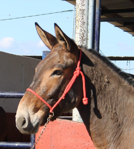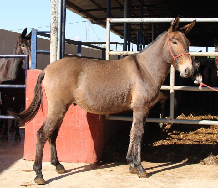 All of our noble mules have been ridden and are safe for traffic. They are not skittish and are regularly taken to Romerías and Ferias (Spanish festivals), so they are accustomed to a certain level of noise and commotion. The handsome gelding is gentle with the rider, well-behaved in handling, and suitable for relaxed rides. Upon request, he can be entrusted to us for further training. International transportation can be arranged.