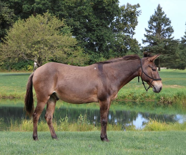 ♦️ 𝐭𝐡𝐞 𝐀𝐌𝐄𝐑𝐈𝐂𝐀𝐍 𝓕𝓪𝓵𝓵 𝓒𝓵𝓪𝓼𝓼𝓲𝓬 ♦️ Happening now thru MONDAY | OCTOBER 20th - Available EXCLUSIVELY on HorseBid's website! For more details and to register visit: www.Horsebid.com CONSIGNOR CONTACT: Philip Bontrager's Horsemanship 989-387-7441 LOCATION: Howell MI BREED: Mule REGISTERED: No COLOR: Bay HEIGHT: 13.3 AGE: 7 GENDER: John Mule I want to introduce you to a very unique mule, "Mr Brown". Brown as we call him is a 7-year-old bay John mule. He stands 13.3hh and weighs around 800 lbs. Brown rides english and western. He is a very good trail horse and is also very good with his arena work. He has a nice walk, trot, canter,and is very comfortable to ride. Brown lopes circles, takes both leads, and is soft in the bridle. Brown has been on many trail rides and on the road, he really enjoys it. He Loads, clips, and baths. I have done some roping with him, he is absolutely legit and fun to ride. Brown is a very beautiful mule and he is also very friendly. He is easy to catch and has good ground manners. Brown is 100% sound and he enjoys going on a trail ride. He is sensible and also has enough stamina to do a day's work. Brown is very sure-footed, he would make a good pack mule. He is very tough and he will trail ride all day, through brush, between trees,over logs, and through creeks. If you're looking for a good pack mule or an all around mule to ride then be sure to check out Mr. Brown. For more information or to schedule a visit with this unique mule, please call Phil @ 989-387-7441.