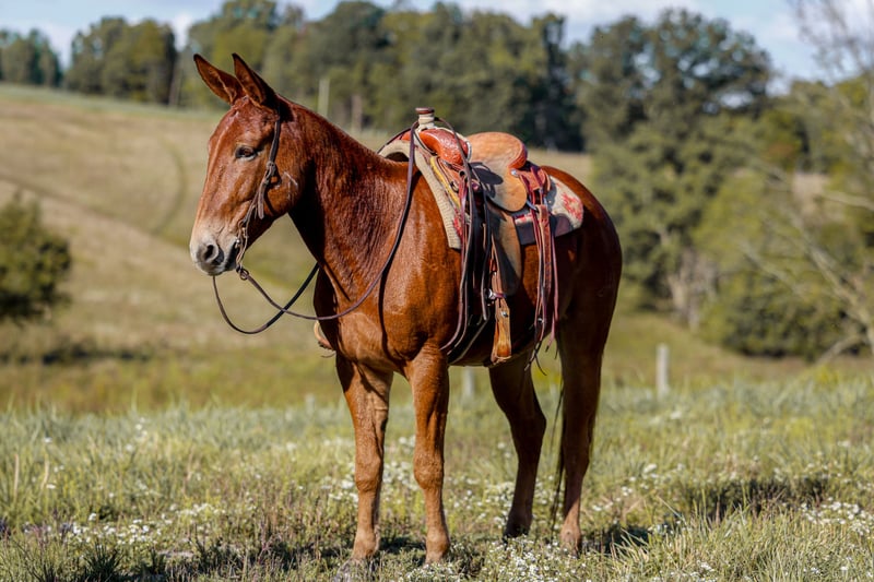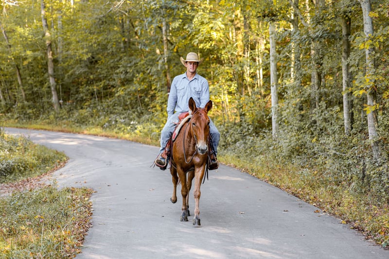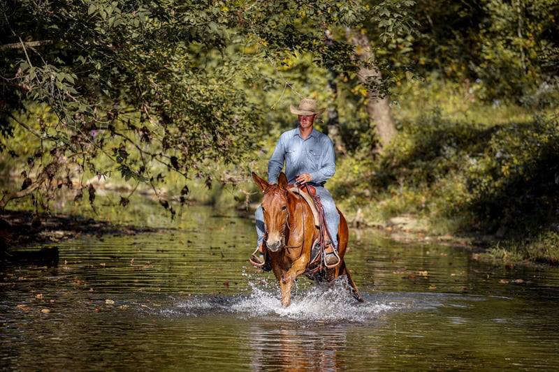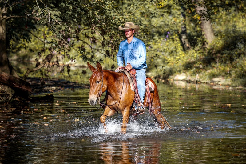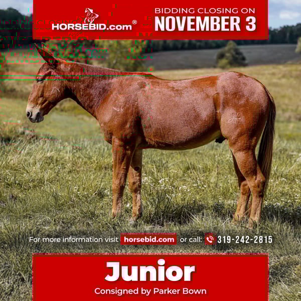 ⚜️𝐓𝐇𝐄 𝐅𝐀𝐋𝐋 𝐇𝐄𝐑𝐈𝐓𝐀𝐆𝐄 𝐂𝐋𝐀𝐒𝐒𝐈𝐂⚜️ Happening now thru MONDAY | NOVEMBER 3rd - Available EXCLUSIVELY on HorseBid's website! For more details and to register visit: www.Horsebid.com CONSIGNOR CONTACT: Parker Bown 319-242-2815 LOCATION: Somerset, KY BREED: Mule REGISTERED: No COLOR: Sorrel HEIGHT: 15.2 AGE: 7 GENDER: John Mule Meet Junior! Junior is a John mule standing 15.2 and the perfect age of 7! We have had Junior for the last 2 years, in the last two years he’s spent many days on the trails and gathering cattle. We spent many long weekends camping and Junior always adapts to new campsite with ease. He will stand all weekend on a picket line and not fuss about it and hobbles as well. On the trails he’s very brave and will go wherever you point him and not question you. He will lead the pack and remains calm when other horses ride off from him. We have had fun taking Junior to fun shows, we have had multiple blue ribbons in the western pleasure. We have done the pickup race, poles and barrels with him. Some of these classes require him to be ridden double which does not bother him. We often times get called to gather loose cattle and Junior has came with many times. If someone green is coming with us to gather cattle we often put them in Junior because he is hard to frighten in the wild times that can happen. Junior is easy to catch, shoes great, loads with ease, and stands to be bathed. Mules like him are hard to come by. He’s athletic with a fancy handle, takes both leads, has smooth transitions, and nice turnaround. This would make him a great mule to take to the show pen or stick out anywhere u go on the trail. Please call Parker at 319-242-2815 with any questions and we can help set up transportation nationwide!