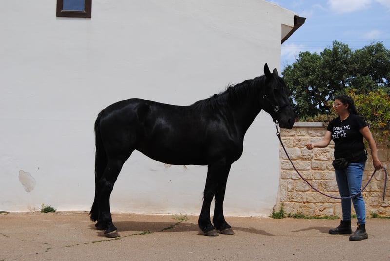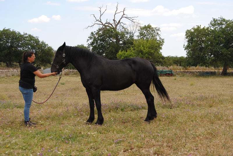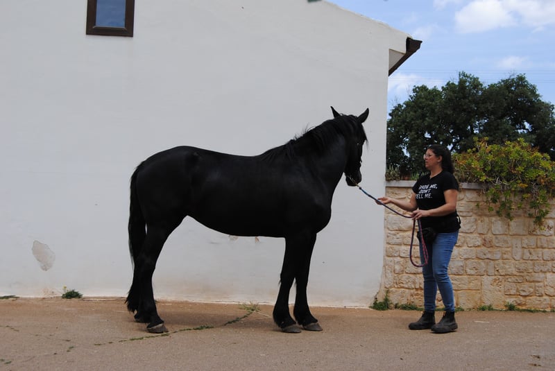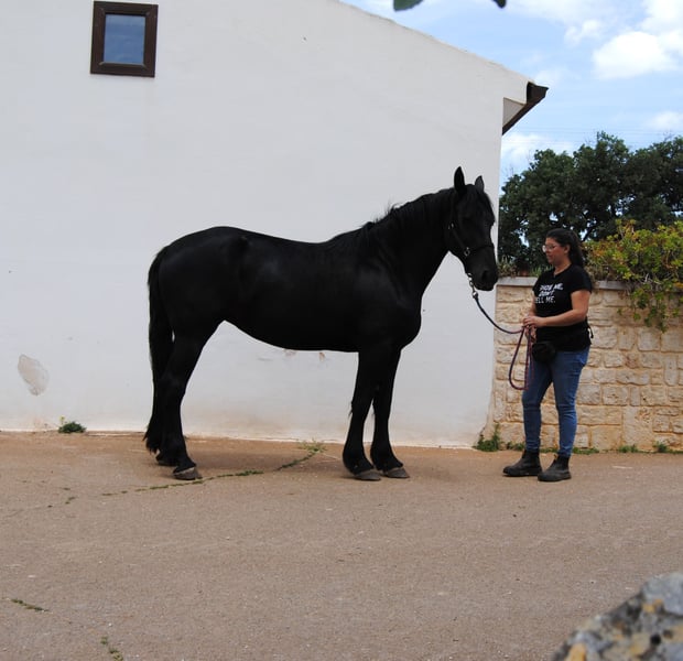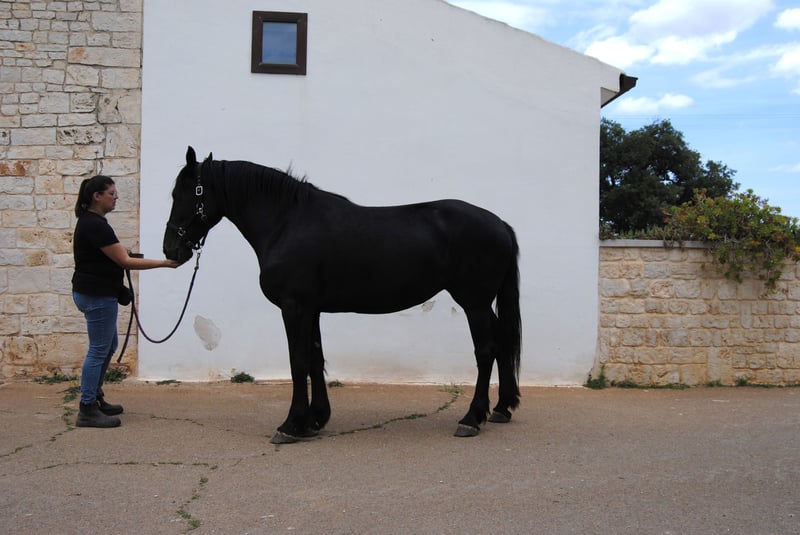 Today we are introducing Quera di Capoiazzo. Quera was born in our herd on May 2, 2020, so she will be 5 years old this spring. Quera grew up in our herd of Murgese broodmares, confronting horses of all ages during these almost 5 years. This has made her extremely relationally competent; she is a calm mare with other horses, is not aggressive and can relate to both older and younger subjects safely. In addition, she is not anxious, either relative to resources or at the time of removing her from the herd. She has had only positive experiences with humans, is able to box, and we are working through positive reinforcement, on her skills related to grooming, foot care and longe work. In October 2024, she was evaluated and approved as a broodmare with a very good score. Quera really represents an excellent opportunity for those who are looking for a horse that is healthy, and ready to start working on her saddle taming, without running the risk of doing premature work that could ruin her physique. She will be 5 years old shortly, and has not undergone any taming or early work that could compromise her. She is a very typical mare, even in her temperament. While she is sociable, she is one of those horses that bonds very closely to a few people in particular, giving them her whole self. Quera is excellent for those who want a companion for life with whom to work in classical riding, work riding and enjoy walking and trekking. Quera is a mare who does not spook easily, who reflects and reasons. We are looking for a permanent family for her that can take her in and make a lifelong journey. We are available to help you in the buying process: - by sending you all the photos, videos and documents you need for a long-distance purchase, - welcoming you if you wish to come to our kennel to meet her in person, - supporting you to arrange veterinary visits according to your wishes, - arranging transportation and its related documentation. You can visit our website: https://masseriacapoiazzo.it/ and our socials: instagram: https://urly.it/3ajhc Facebook: https://urly.it/3ajhd and contact Paola on whatsapp at: +393465232016 for any information, request, doubt or curiosity. -->Ours is a historical breeding, our Murgese horses live on the murgia 24/7. We have selected our broodmares so that we have more and more confident horses and we spend time in the herd every day, both to check their health and to create strong relationships with the foals and make them experience the man as a friendly presence. We apply scientific theories related to fear- and constraint-free learning modes to their grooming.