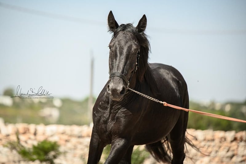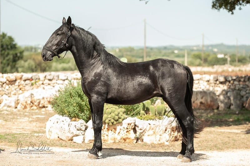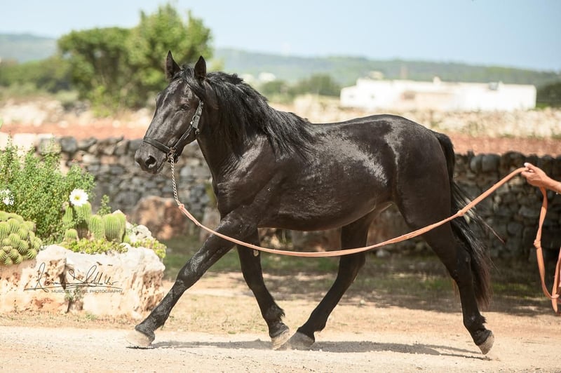 The 2.5-year-old Tristano is still a stallion. He belongs to the baroque Murgese breed and currently has a height of 156 cm, with an expected final height of 164 cm. The costs of castration are already included in the purchase price. Tristano presents himself as friendly and open-minded and has mastered the basics of young horse training. A balanced character and a clear mind make him an ideal partner for leisure, working equitation, or as a future riding or driving horse. The young stallion is still with his breeder in Apulia (Italy) and can be viewed there at any time by appointment. He also comes with X-rays, which can be viewed upon serious interest. We also plan everything else for you – clinical pre-purchase examination, processing of the purchase contract, transport to your home stable, etc. Cavallo Murgese.de – on behalf of and in collaboration with the Italian Murgese Association A.N.A.M.F.