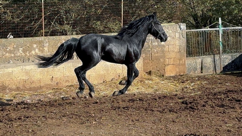 Tosatti is liefdevol opgegroeid en wordt voorbereid op zijn latere leven met rust, geduld en vakmanschap. Hij beheerst de basis van de jonge paarden zeer goed, is rustig en blijft ook in stressvolle situaties volledig ontspannen. Hij is momenteel ongeveer 1,60 m groot, met een geschatte eindmaat van 1,64 m. Hij heeft een stevig, maar niet te barokke bouw, typisch voor een krachtig warmbloedtype, met een atletisch postuur. Zijn gangen zijn krachtig en niet al te ruim, wat hem geschikt maakt voor de klassieke dressuur en working equitation. Maar ook als gewoon recreatiepaard zal hij zeker een goede indruk maken. Zijn karakter is typisch voor een jong paard: nieuwsgierig, open en soms een beetje vragend. Wil je meer over Tosatti weten? We horen graag van je! Röntgenfoto’s zijn aanwezig en kunnen bij serieuze interesse worden ingezien. Daarnaast regelen wij alles voor je: klinisch onderzoek, afwikkeling van het koopcontract, transport naar je thuisstal, enzovoort. Cavallo Murgese.de – in opdracht en samenwerking met de Italiaanse Murgesenvereniging A.N.A.M.F.