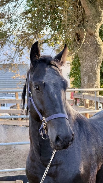 Tosatti has been lovingly raised and is being prepared for his future life with patience, calmness, and expertise. He has a solid foundation in the young horse basics, is very relaxed, and remains cool even in stressful situations. He is currently approximately 16.0 hh, with an estimated final height of around 16.2 hh. He is a robust, heavy warmblood type, with a strong but not overly bulky build—more athletic in appearance. He moves with powerful gaits that are not overly expansive. He is suitable for classical dressage as well as working equitation. However, he would also make a good partner as a versatile leisure horse. His character is typical for a young horse: curious, open-minded, and occasionally a bit questioning. If you would like to learn more about Tosatti, we look forward to your message. X-rays are available and can be viewed upon serious interest. We will also take care of everything else for you—clinical pre-purchase exam, contract processing, transport to your home stable, and more. Cavallo Murgese.de – on behalf of and in collaboration with the Italian Murgese Breeding Association A.N.A.M.F.
