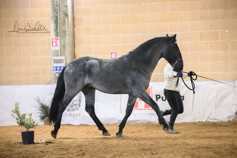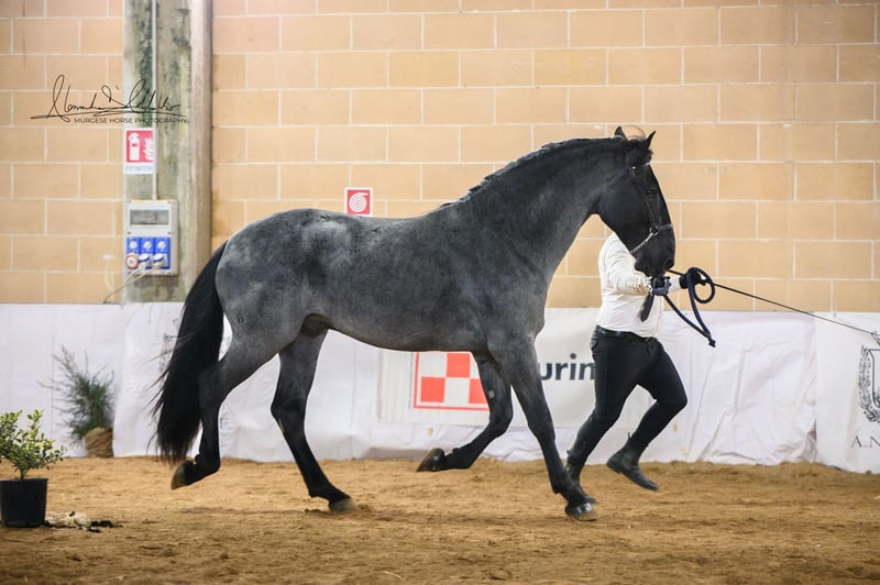 Tango di Farinella è un giovane stallone Murgese di straordinaria qualità, approvato alla riproduzione con la massima valutazione: classe A. Un primato che lo rende unico: è il solo figlio roano di Paisiello ad aver ottenuto questa distinzione, confermando la sua eccezionalità sia fenotipica che morfologica. Con i suoi 165 cm al garrese (destinati a crescere ulteriormente) Tango si presenta come un soggetto molto slanciato, armonioso e dai movimenti brillanti. Il suo carattere è fondamentalmente buono, ma Tango è un cavallo con una forte personalità: vivace, curioso e pieno di energia, richiede esperienza nella gestione di uno stallone. Un'opportunità rara per chi cerca un soggetto di sangue e valore.
