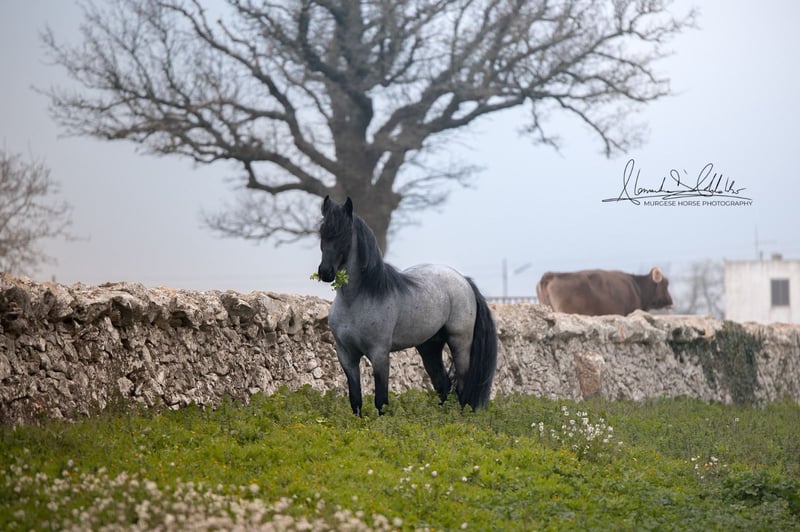 If you are looking for a special horse with a lot of potential and charm, then Pericle might be just the right one for you. Pericle stands out not only for his rare and impressive special color Blue Roan but also for his honest character. He is familiar with the saddle and has been ridden, although his last ride was some time ago. His height is approximately 160 cm. Pericle is currently still a stallion in Italy. He can be castrated upon request (already included in the price). We look forward to inquiries – further information and videos are of course available. Do you want to meet Pericle in person? Then join us on a journey to his homeland in Apulia. X-ray images are of course available. A vet check can be conducted on-site upon request. We also plan everything else for you - handling the purchase contract, transport to your home stable, etc. Cavallo Murgese.de - on behalf of and in collaboration with the Italian Murgese Association A.N.A.M.F.