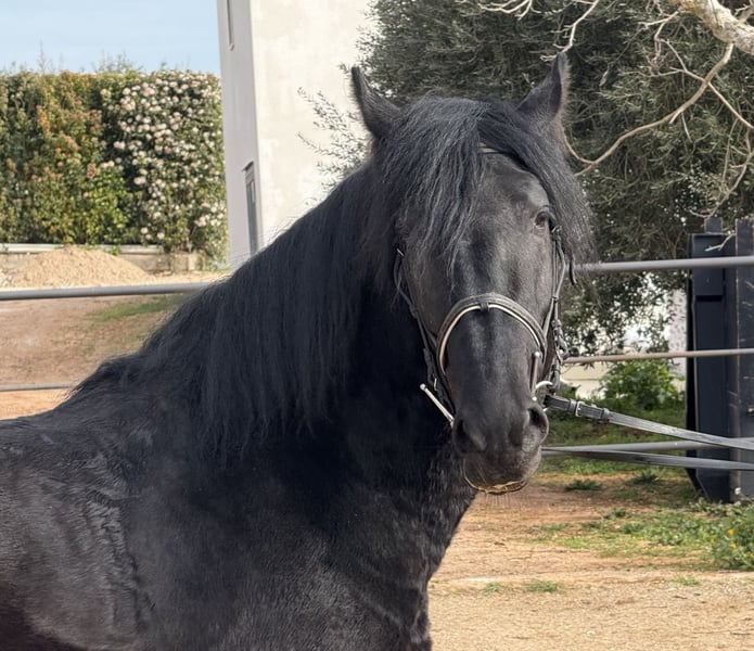 Indeed a rarity that we are allowed to present here. Riobo is a four-year-old Murgese who was slowly started under saddle at the beginning of the year and has since made good progress in his riding education. He was born and raised in this breeding program, from where we are now able to facilitate his sale. His training also took place and is still ongoing here. He has experienced quite a bit – life outdoors in a herd, as well as the bustling activity on a farm with dogs, machinery, and people. Riobo is well-behaved under saddle, works diligently, and learns quickly. He is a wonderful young fellow, well-mannered on the ground, yet with a bit of spirit that keeps him from being dull. Riobo is therefore suitable as an all-rounder for a family that wants to build upon the established foundation and is eager to further promote and train a young horse. He belongs to the light to medium type, with strong legs and a short back. Do you want to meet Riobo in person? He is currently still in his home in Apulia – we are happy to plan a visit there with you. He also comes with X-rays, which are available for serious inquiries. We will also take care of everything else for you – clinical vet check, handling of the purchase contract, transport to your home stable, etc. We look forward to your message! More pictures and a video of him in motion are available upon request. - On behalf of the Italian Murgese Association A.N.A.M.F.