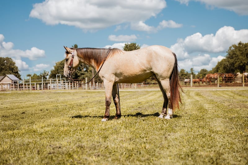 ♦️ 𝐭𝐡𝐞 𝐀𝐌𝐄𝐑𝐈𝐂𝐀𝐍 𝓕𝓪𝓵𝓵 𝓒𝓵𝓪𝓼𝓼𝓲𝓬 ♦️ Happening now thru MONDAY | OCTOBER 20th - Available EXCLUSIVELY on HorseBid's website! For more details and to register visit: www.Horsebid.com CONSIGNOR CONTACT: Schleg Performance Horses 574-806-5327 LOCATION: North Judson, IN BREED: Mustang REGISTERED: No COLOR: Buckskin HEIGHT: 13.2 AGE: 3 GENDER: Gelding JJ is a true Mustang from the west, but don’t let that get in the way of seeing all his amazing talent. He stands 13.2 and is packed full of talent. From his incredible stop to jumping and roping, JJ has been ready and willing to please in anything we have asked him to do. JJ is a very athletic mover, light on his feet and smooth in all gaits. We have used him all over on the farm and taken him to town to see the sights. JJ has been hauled here and there to practice roping pens and rodeos and handles all the commotion and chaos like a champ. He is light in your hands and on your leg, giving to the bridle and easily moves shoulders, hips and side passes. Out on the trail JJ has crossed rivers and streams, tread through the mud, climbed up and down hills and crossed over logs. He is easy going whether he’s in the front of a group, in the middle or brining up the rear.JJ loads great and hauls well. He has been hauled to several over night camping trips and stands quiet at the hitching rail. We have rode JJ many miles in both English and western tack. Here at the farm, JJ lives out on a lot with a couple other horses. He is not a bully to other horses but also not on the bottom of the pecking order. He is a super easy keeper and requires no maintenance. He is easy to catch outside and when stalled, JJ is very mannerly and easy going. In and out of the arena JJ has easy gaits, smooth transitions and he guides well on a neck rein. JJ has been my go to ride most of this year, and I’m sure that once you swing a leg over him you’ll understand why.