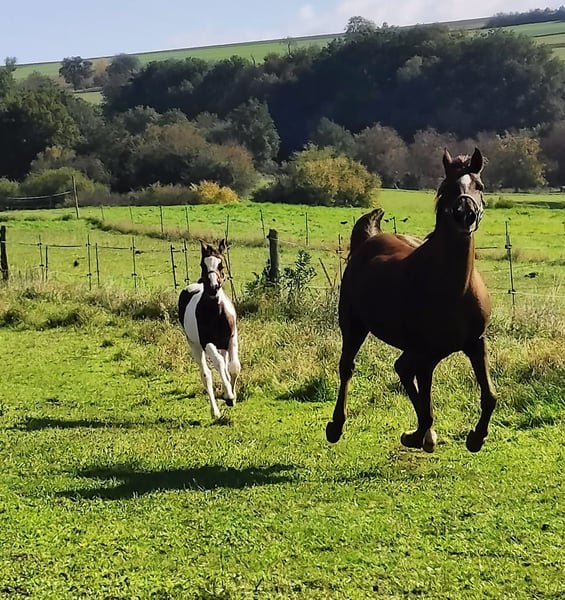 Vielversprechendes, typstarkes Stutfohlen in bunter Jacke – von Spirit of Colour aus unserer Verbandsprämienstute PC Asallah. Spirit’s Alisha, ist Prämienfohlen beim ZSAA - eingetragen als Deutsches Edel-Blut Pferd. Geschätztes Endmaß: ca. 164 cm Ihr Vater: Spirit of Colour vererbt konstant besten Charakter, Rittigkeit und Nervenstärke. Im Sport erfolgreich Dressur - Springen und Gelände (A-L) Die Mutter PC Asallah: Sie bringt arabische Leistungsbereitschaft, Härte und Ausdauer mit und stammt aus einer sportlichen, gerittenen und bewährten Zuchtlinie. Alisha selbst zeigt sich kompakt, wendig, intelligent und schnell – mit natürlicher Veranlagung interessant für Working Equitation, später sicher vielseitig einsetzbar. Sie ist außergewöhnlich intelligent, lernt rasch und ist dem Menschen sehr zugewandt. Sie ist regelmäßig entwurmt, Geimpft kennt den Hufschmied und beherrscht selbstverständlich das Fohlen-ABC. Im täglichen Umgang zeigt sie sich neugierig und mutig. Aufgewachsen in einer gemischten Herde, ist sie bereits bestens sozialisiert. Wegen kleinem Schönheitsfehler unter Wert zu verkaufen. Ab sofort darf sie in ihr neues Zuhause umziehen. Bei ernsthaftem Interesse freue ich mich über eine Nachricht.