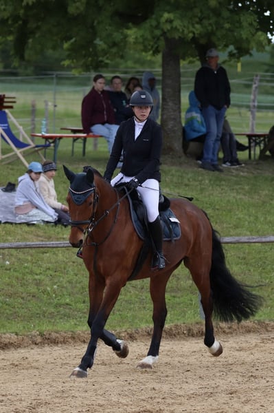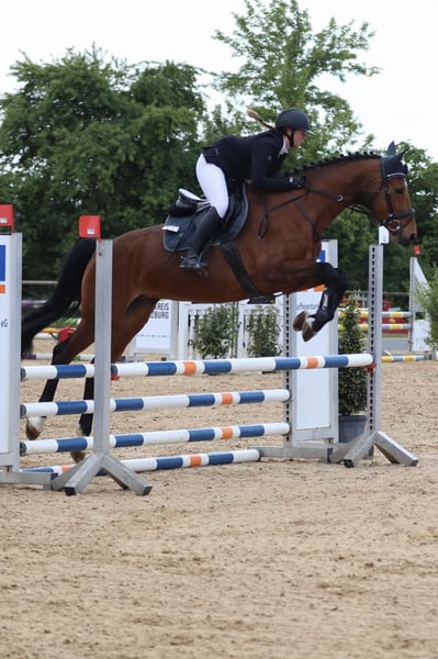 Super sweet 10-year-old German Sport Horse mare by Lebemann x Restorador with a lot of potential for jumping for sale. ~ 1.65m ~ Perfect current vet check with back = ~ Safe in cross-country ~ Shoeing and loading well-mannered ~ Competition experience Won A* and placed A** ~ Also knows cross-country obstacles ~ Very eager to learn ~ In training, she is already jumping individual M jumps without problems Has had 2 foals and has only been worked properly since December 2024.