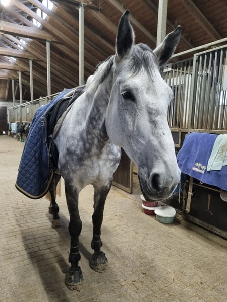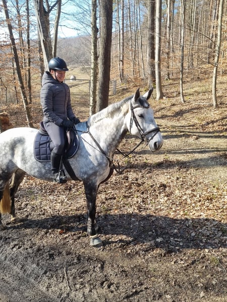 Lescuria is a well-balanced, motivated, and completely honest mare that we are reluctantly offering up for sale due to lack of time. She is easy to ride, making her suitable for beginners, reintegration riders, and ambitious leisure riders. We could also easily imagine her as a vaulting horse. At four and five years old, Lescuria each foaled a foal, then was gently backed and has been supported in show jumping from the age of six. She is therefore also of interest for breeding. Lescuria has achieved placements up to class M in show jumping and is at L-level in dressage. She is suitable for both leisure-oriented and sport-aspiring riders. Lescuria is healthy and very sociable. She is always well-behaved, uncomplicated, and brave both in handling and riding. She remains calm in unfamiliar surroundings, at competitions, or during loading. She is exemplary with the vet and farrier. She rides out alone and in groups. Lescuria can be tested at any time in Bad Schussenried. A loving, suitable home is particularly important to us – quality over price. No dealer inquiries!