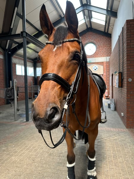 Fritzi ist eine liebevolle Stute mit sehr guter Ausbildung und Qualität. Sie ist nicht nur ein Hingucker und mit ihrer Größe sehr leicht zu reiten, sie liebt es auch ins Gelände zu gehen und ist in aller Umgebung super brav. Fritzi macht es ihrem Reiter sehr einfach und möchte jederzeit gefallen. Auch unerfahrene Reiter haben auf ihr stets ein sicheres Gefühl und können sie ganz leicht reiten. Durch ihre sehr gute Grundausbildung ist sie auch die perfekte Lehrmeisterin für ambitionierte Reiter die noch etwas lernen möchten. Sie war nun eine Saison in der Zucht und wird aus persönlichen Gründen nur schweren Herzens in aller beste Hände abgegeben. Platz vor Preis! Für mehr Informationen kontaktieren sie mich gerne.