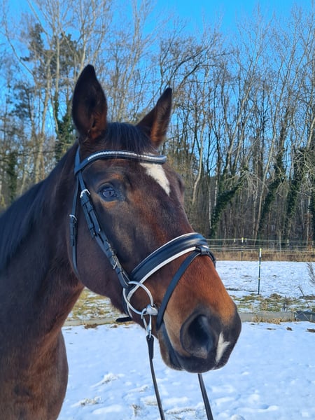 Aufgrund weiblicher Nachzucht verkaufen wir unsere selbstgezogene "Ilona". Sie wurde schonend angeritten, in Springpferdeprüfungen vorgestellt und hatte bei uns 3 Nachkommen, die teilweise noch besichtigt werden können. Mit einer direkten Kolibri-Tochter als Mutter führt sie altbewährtes und mittlerweile seltenes Erfolgsblut im Pedigree, was sie auch weiterhin interessant für die Zucht macht. Besonders hervorzuheben ist ihre hohe Fruchtbarkeit. Bei jedem ihrer Nachkommen wurde sie bereits bei der ersten Besamung tragend, zweimal davon auch mit TG, weshalb wir sie uns auch als zuverlässige Empfängerstute vorstellen können! Sie steht bei uns barhuf in einer gemischten Herde im Aktivstall und war nie krank. Auch nach mehreren Tagen Pause zieht sie zuverlässig ihre Kreise unter mitreitenden Mädels.