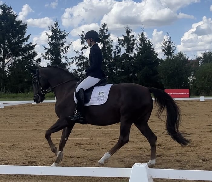 Verkaufe elegante deutsche Sportpferdestute Zum Verkauf steht eine wunderschöne deutsche Sportpferdestute, die durch ihre Vielseitigkeit und ihr edles Erscheinungsbild besticht. Geboren im Jahr 2011, präsentiert sie sich in einem beeindruckenden Dunkelfuchs-Farbton und hat ein Stockmaß von 162 cm. Diese talentierte Stute ist ideal für den Dressursport geeignet und überzeugt durch ihre elegante Bewegungsführung sowie ihre Lernbereitschaft. Sie ist gesund, gut ausgebildet und zeigt stets freundliches Wesen und viel Willen. Sie ist sehr ausgeglichen und für jeden Spaß zu haben. Lilly hat keine Unarten und ist sehr brav. Sie ist vorn beschlagen, Schmiede- und Verladefromm, buckelt nicht und steigt nicht. Lilly konnte in der Vergangenheit viele Siege und Platzierungen bis zur Klasse M** erreichen. Aktuell ist sie L Dressur siegreich und somit top fit um direkt loszureiten. Auf dem Turnier wurde sie auch im Springen bis zur Klasse A** vorgestellt. Auch für die Freizeit ein top Partner, mit dem man jeden Tag Spaß haben kann. Lilly hat keinen aktuellen TüV da sie bereits seit 11 Jahren im Besitz ist und damals direkt vom Züchter erworben wurde. Perfekt für ambitionierte Reiter, die ein zuverlässiges und braves Pferd suchen. Bei Interesse oder für weitere Informationen stehe ich gerne zur Verfügung.