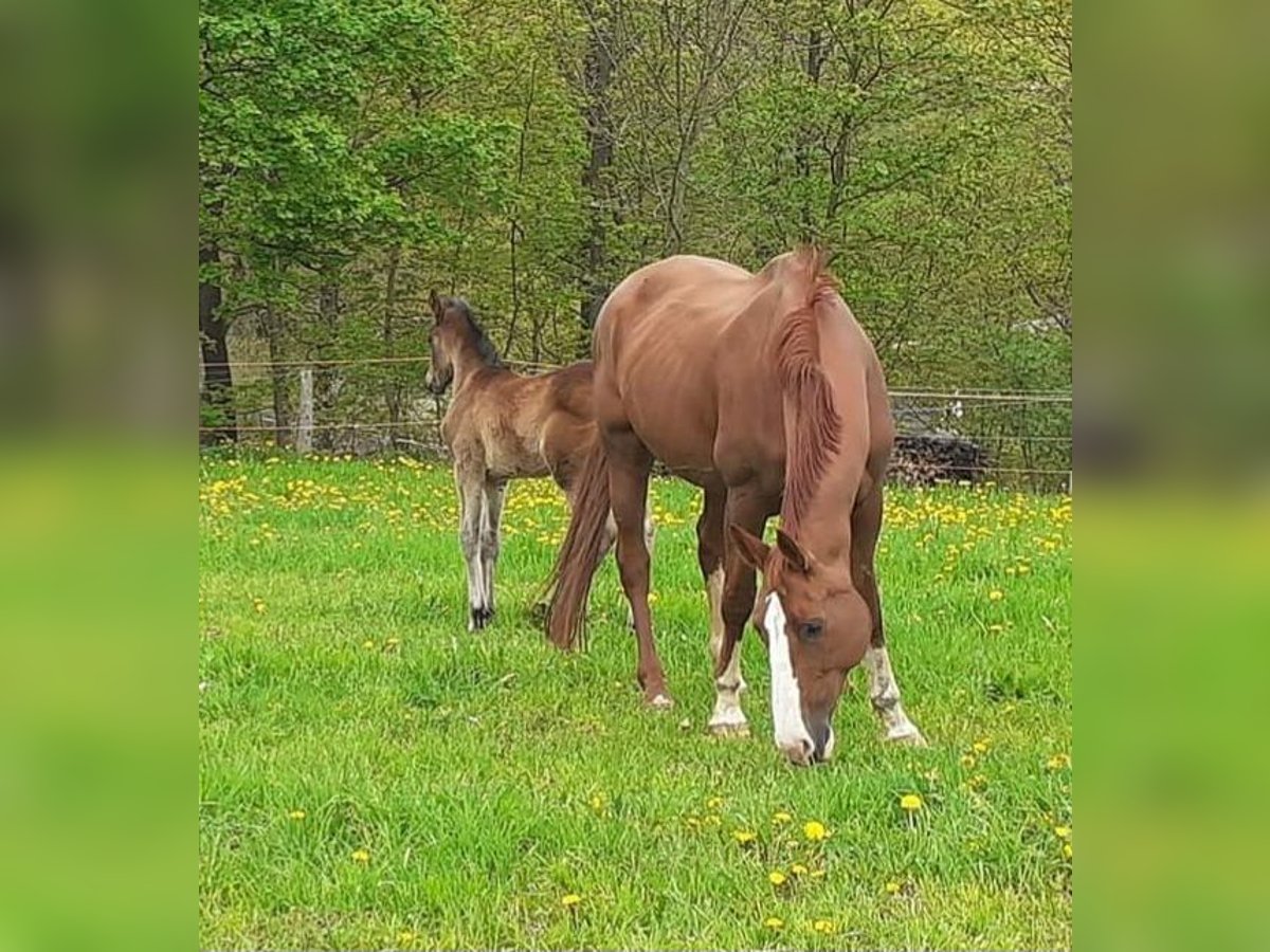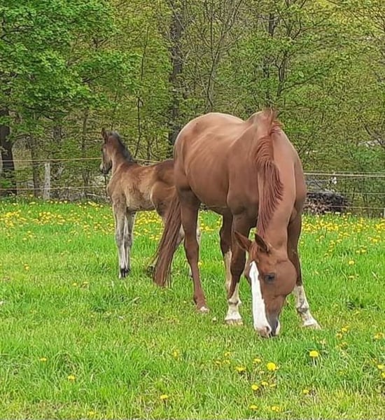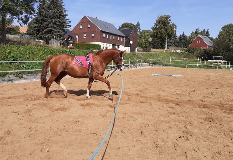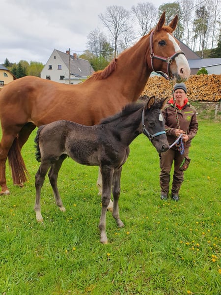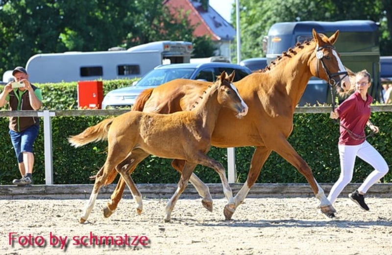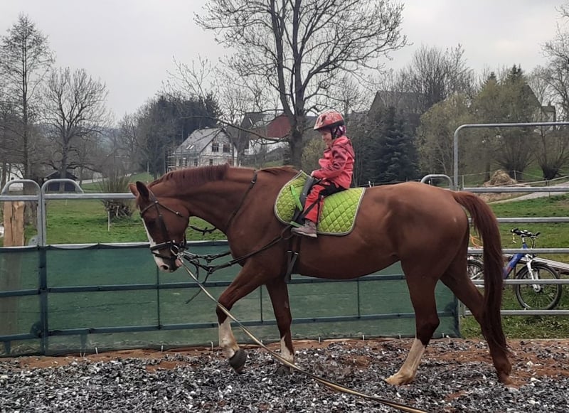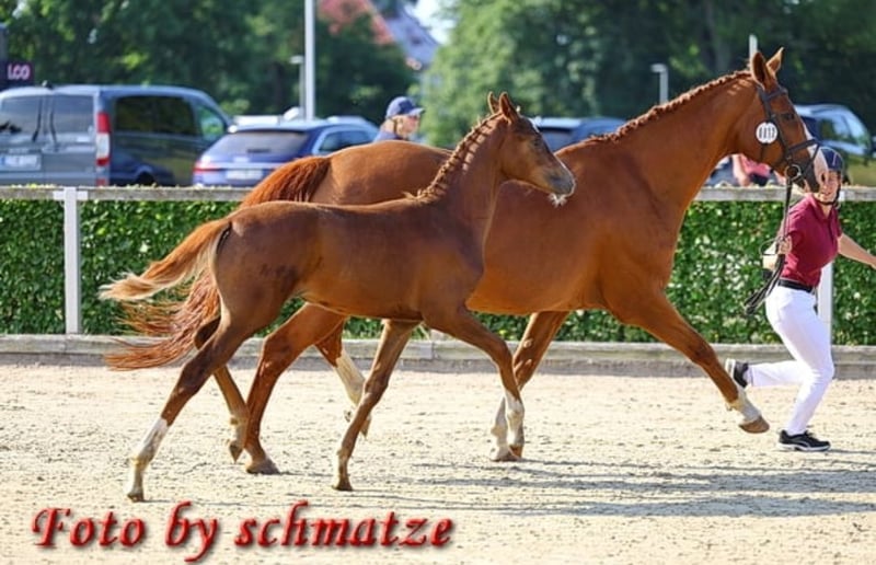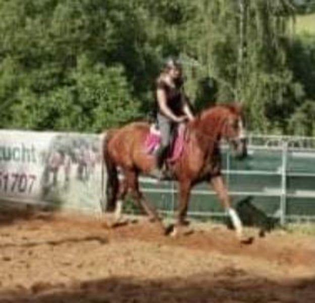 Auf Grund von Nachzucht,sucht unsere Quincy ein neues 5 Sterne Zuhause. Quincy ist 2008 geboren und 1,74m groß. Abstammung: Quaterback x Paradiesfalter. Sie ist Staatsprämienstute! Sie ist früher im Fahrsport auf Turnier unterwegs gewesen und bei uns dann in der Zucht eingesetzt wurden.sie war immer beim ersten Mal tragend und hatte ganz tolle Fohlen darunter Auktions und Championatsfohlen. sie wurde besamt mit Felissimo und ist hoffentlich tragend für März 2027. Sie wird als Zuchtstute abgegeben. Wir sind sie auch auf Schauveranstaltung, Fuchsjagden, Führzügelwettbewerben mit geritten. Tolles umgängliches Pferd mit angenehmen Go,nach dem abfohlen Natürlich auch wieder reitbar. Beim Schmied brav,Hänger fahren kein Problem und hatte auch keine Krankheiten in meinem Besitz. Ein TÜV liegt aktuell noch nicht vor, kann aber durch den Interessenten beauftragt werden. Stute ist aktuell nicht geritten,da Zuchtstute.