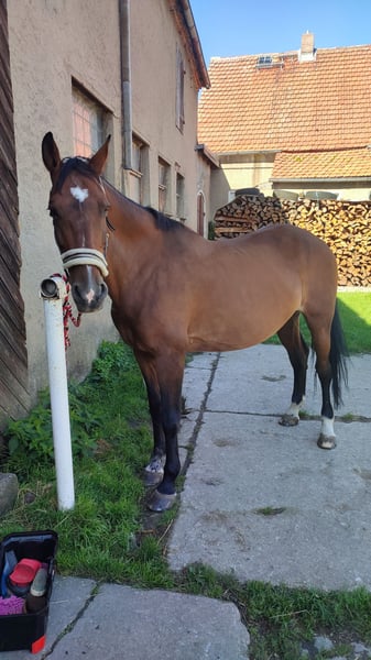 Ich suche für meine 18-jährige Warmblutstute Amber ein neues Zuhause als Freizeitpferd. Aufgrund von persönlichen/privaten anstehenden Veränderungen werde ich leider nicht mehr in der Lage sein, mich so um sie zu kümmern, wie sie es verdient hätte. Für ihre 18 Jahre ist Amber noch top fit. Sie hat ein Stockmaß von 1,66 m und selbstverständlich einen Pass, ist regelmäßig geimpft und entwurmt. Amber liebt die regelmäßige Arbeit und hat sehr viel Spaß daran, aber auch kein Problem damit ihre Zeit auf der Koppel zu genießen. Sie testet gerne ihre ReiterIn (ganz Stute) ist aber mit klaren Anweisungen und Impulsen ein absolutes Lehrpferd und einfach traumhaft zu reiten. Sie hat mit unter einen spritzigen Galopp, geht dabei aber nicht durch und lässt sich gut händeln. Trotzdem ist Amber kein Anfängerpferd, da sie reiterliche Unsicherheit auch für sich zu nutzen weiß. Im Sommer hat sie hinten häufiger dicke Beine. Dies schränkt sie jedoch nicht ein und ist nach Bewegung kein Thema mehr. Sie ist Schmiedefromm, komplett beschlagen und im Winter geschoren. Amber ist nicht verladefromm und stand in den letzten Jahren auf der Koppel eher alleine. Abzugeben mit allem Zubehör (Sattel auf Anfrage) was sie besitzt (Decken, Trense, Halfter, etc.) Meldet euch bei ernsthaftem Interesse gerne für weitere Infos und ein erstes Kennenlernen unter 01725154779