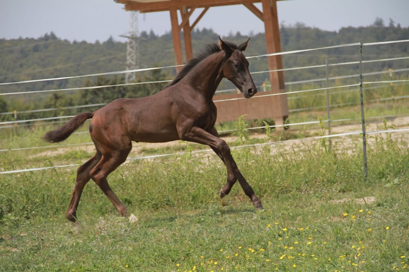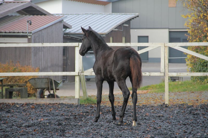 Wir bieten hier ein hübsches, bewegungsstarkes Stutfohlen mit allerbestem Charakter an, sie ist selbstbewusst und mutig, sehr lieb und verschmust - und sie freut sich immer wenn der Mensch kommt. Tiana besticht außerdem durch ein absolut korrektes und stabiles Fundament und 3 völlig klare und korrekte GGA, wodurch die besten Voraussetzungen für lange Gesundheit und Haltbarkeit gegeben sind. Mutter und Halbschwester können besichtigt werden und bestätigen dies, ebenso wie der Halbbruder der letztes Jahr gekört wurde! Beide Geschwister waren auch super brav und unkompliziert beim anreiten! Tiana wurde am 14.06.2025 geboren und war bereits mit knapp 5 Wochen auf der Fohlenschau - das hat sie total brav gemeistert und trotz des jungen Alters bereits die Silberprämie vom Verband erhalten! Sie ist natürlich halfterführig, kennt das Fohlen-ABC und ist mit ihrer Mutter zusammen schon Hänger gefahren. Auch die ersten Ausritte bei Fuß ihrer Mutter hat sie schon völlig souverän und unerschrocken gemeistert. Geschätzt wird sie ca. 170cm groß. Im Moment wächst sie in der Herde auf, ist nachts im Stall, aber tagsüber jeden Tag bei Wind und Wetter draußen. Wir wünschen uns eine liebevolle und artgerechte Aufzucht und können sie uns später in verschiedenen Bereichen vorstellen, wobei ihr das Dressurtalent von ihrem Vater natürlich in die Wiege gelegt ist. Bei Bedarf kann sie auch ins neue Zuhause gebracht werden. Standort ist 69151. Gern einfach melden und vorbeikommen, hier wächst eine ganz tolle junge Dame heran!