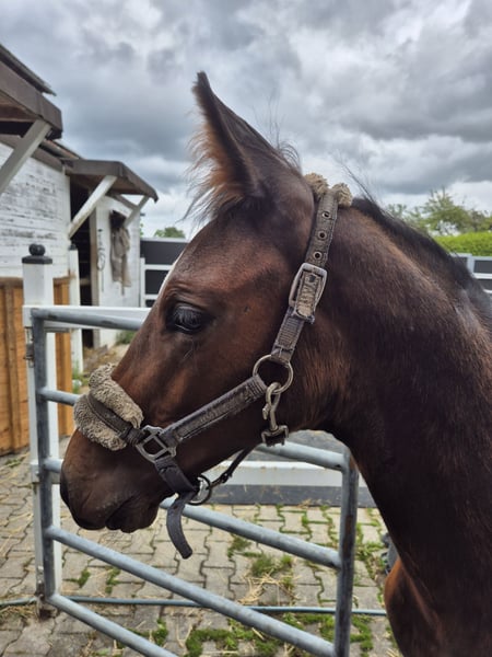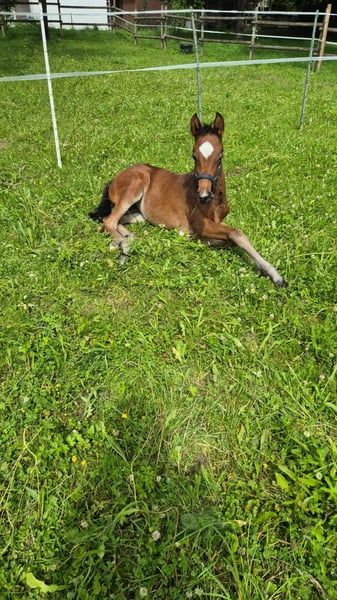 bildschönes, langbeiniges und im größeren Rahmen stehendes Stutfohlen von Duplexx mit weiblich, charmantem Gesicht. Die Mutter des Fohlens ist eine doppelt veranlagte Leistungsstute Springen, die selbst mit junger Amazone bis S-Springen erfolgreich war und bereits einen S-siegreichen Sohn hat. Der Vater Duplexx, einer der wenigen Hengste, die sowohl im Springen bis Klasse S als auch in der Dressur bis S erfolgreich ist und auch in der Vielseitigkeit bereits 5 jährig Vizebundeschampion war. VV: Diarado - seinerzeit Siegerhengst seiner Körung - stellte mehr als 50 1.60 Meter-Parcours-Pferde. Über die Mutterseite führt er Heraldik XX, der mit Abstand der beste Zucht-Vollbluthengst war. Im Springen und in der Dressur produzierte er mehrere Grand-Prix Pferde. Auch der Muttervater Werther war ein bedeutender Vererber in der Springpferde- und Dressurpferdezucht. "Der Stamm der alles kann" heißt es bis heute noch. Seine Tochter Werra z.b. zählte unter Nick Skelton zu den erfolgreichsten Springpferden ihrer Zeit. Auch bedeutend in der Mutterlinie der Hengst Graphit, dessen bekanntester Nachkomme King Edward Gold bei den olympischen Spiele in Tokio und bei den Weltmeisterschaften in Herning gewann. Das Fohlen selbst ist sehr gut erzogen und dem Menschen zugewandt. In schöner dunkelbrauner Jacke genießt sie die täglichen Putz- und Streicheleinheiten. Sie kennt den Hufschmied bereits sehr gut - gibt ihre Hufe von alleine, kennt es brav am Strick zu laufen und angebunden zu werden und auch eine Decke lässt sie bereits brav anziehen. Wer ein für die Vielseitigkeit interessantes Fohlen sucht findet hier genau das richtige. Eventuell können wir uns auch vorstellen das Fohlen zur Verfügung zu stellen - wenn der Platz passt.