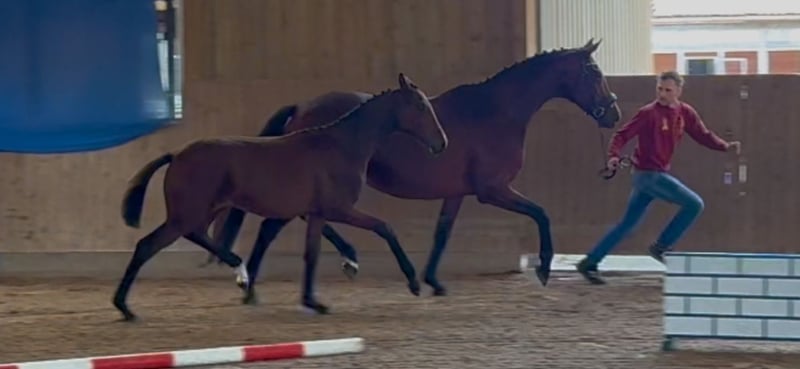 Stylish, well-behaved, and energetic filly with an interesting pedigree! Descended from the lineage of the Olympic horse Escapado (Carl Hester). Born: 18 March 2025 Sire: Van Vermeer x Dam: Vilancio x Granddam: Royal Hit Video available and can be shipped upon request. Contact: 01721831922
