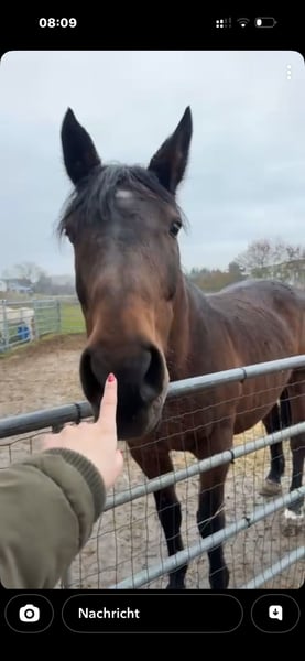 Wir suchen für unserer Stute einen Endplatz mit viel Herz, Liebe und Pferdeverstand HÄNDLER - SCHULBETRIEB AUSGESCHLOSSEN Trotz ihrer stolzen 20 Jahre ist Sie noch Top Fit und bewegt sich wie eine 8 jährige 165 cm groß Herdenverträglich Gesund Gesucht wird ein Endplatz mit Koppel Ehemaliges erfolgreiches Sportpferd sucht Bestplatz Für unsere liebe und erfahrene Sportstute suchen wir einen langfristigen, fürsorglichen Bestplatz. Sie war viele Jahre im Turniersport erfolgreich unterwegs und ist bis Springen S** platziert. Die Stute ist außergewöhnlich brav, menschenbezogen und genießt jede Form von Zuwendung. Nach ihrer erfolgreichen Sportkarriere hat sie zwei gesunde Fohlen zur Welt gebracht und kann weiterhin geritten werden – ob entspannt im Gelände, bei schönen Ausritten, oder in der Dressurarbeit. Ein Platz mit viel Koppelgang, Liebe und Aufmerksamkeit ist uns besonders wichtig, da sie es liebt, draußen zu sein und die Nähe zu ihren Menschen sucht. Ideal wäre ein Zuhause, in dem sie regelmäßig, aber ohne sportlichen Druck, bewegt wird. gemütliche Ausritte - Dressur - kleine Sprünge Besonders geeignet wäre eine ruhige, einfühlsame Frau, die Freude an gemeinsamen Ausritten und liebevoller Pferdepflege hat. Nur in beste Hände abzugeben! Sie wird nicht als Zuchtstute abgegeben !!!! Bitte per WhatsApp Erstbeschreibung senden 01629060278