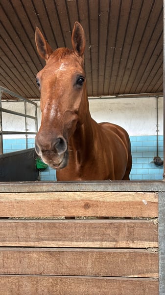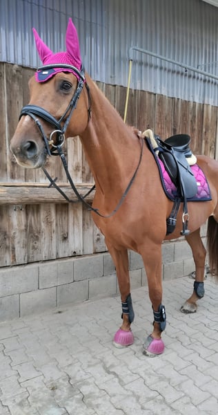 Schweren Herzen, muss ich mich von meiner Stute Gute Laune trennen. Gute Laune ist eine ca 1,75m große 2006 geborene Springstute. Gute Laune hat eine Eintragung ins Stutbuch I Sie ist eine sehr menschenbezogene Stute, leider ist sie nichts für Anfänger, da sie eine feste Hand braucht. Zubehör kann gerne dazu erworben werden. (Spring-/dressursattel, Trense, Decken, usw) Bei weiteren Fragen gerne jederzeit eine Nachricht schreiben :)