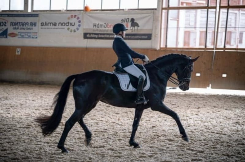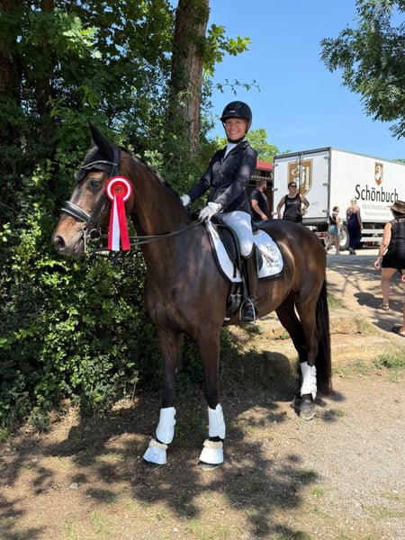 Verkauft wird unsere elegante Dunkelbraune Stute❤️ Diese wunderschöne Stute besticht durch ihre beeindruckende Erscheinung und ihr vielseitiges Potenzial im Dressursport. Mit einem Stockmaß von 170 cm bietet sie die perfekte Größe für ambitionierte Reiter, die Wert auf Qualität und Leistungsbereitschaft legen. Die Stute ist gut ausgebildet und zeigt sich im Dressurviereck äußerst talentiert. Sie verfügt über eine angenehme Grundausbildung, ist gut geritten und besitzt eine ausgeprägte Elastizität, sowie eine harmonische Bewegungsführung. Sie ist bis M platziert und Arbeitspiouretten gehen auch schon . Im Viereck gibt sie immer 100% und will gefallen . Dank ihres Charakters lässt sie sich angenehm reiten und ist sowohl für fortgeschrittene Reiter als auch für ambitionierte Nachwuchsreiter /Anfänger geeignet. Auch einen kleinen Sprung und das Gelände kennt sie . Später sicherlich interessant für die Zucht. Sie wurde stets sorgfältig gepflegt und befindet sich in einem hervorragenden Gesundheitszustand. Sie ist Schmiede- und Verladefromm. Sie ist nicht stutig am Bein . Wer also sein Herzenspferd sucht, ist hier genau richtig . Bei Interesse stehe ich gerne für weitere Informationen und eine Besichtigung zur Verfügung.Melden sie sich gerne per Whatsapp oder zum Telefonieren unter 01732185040