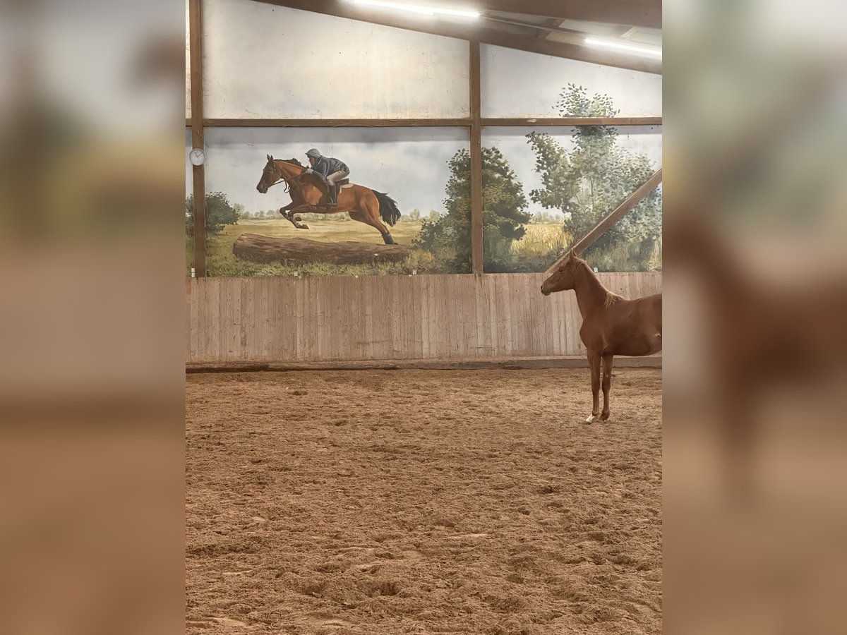 2 jährige Fuchsstute der Extraklasse aktuell ca. 1.45m groß Diese Jungstute wird ca. 163m groß und zeigt sich bisher unerschrocken und menschenbezogen. Anbei ein paar Videos vom 13.01.2026 - erstes Mal Freispringen.