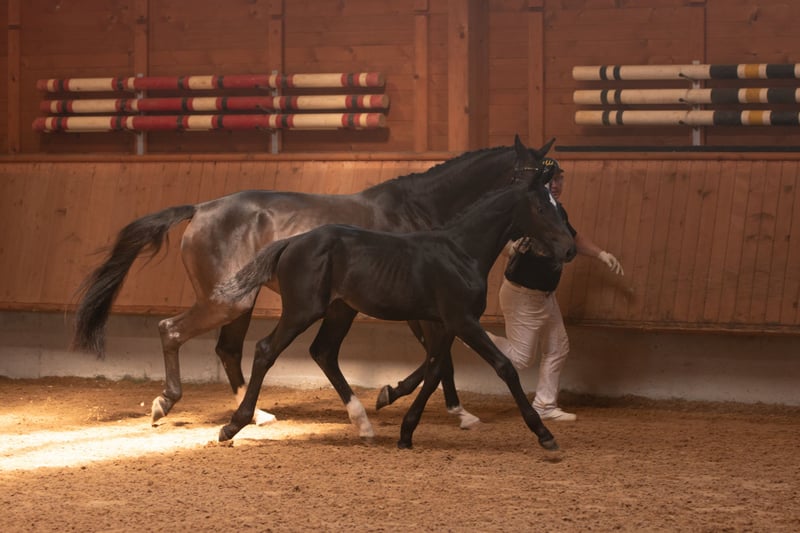 Zum Verkauf steht eine äußerst interessante 2-jährige Nachwuchsstute mit hervorragender Abstammung und viel Potenzial für den Springsport. Abstammung: Vater: Con Spirit DSP Muttervater: Lexicon Weitere Leistungsgenetik über Calido I Die Stute wurde bereits als Silberfohlen prämiert, was ihre überdurchschnittliche Qualität und ihr Exterieur unterstreicht. Sie überzeugt durch ihr modernes, sportliches Erscheinungsbild: sehr groß gewachsen, langbeinig und mit idealen Voraussetzungen für eine erfolgreiche Zukunft im Parcours. Auch im Umgang zeigt sie sich vorbildlich – sie ist brav, halfterführig und verfügt über ein starkes, ausgeglichenes Nervenkostüm. Damit bringt sie nicht nur sportlich, sondern auch charakterlich beste Voraussetzungen für Ausbildung und Turniersport mit. Bei weiterer Förderung ist sie eine hochinteressante Perspektive für ambitionierte Reiter oder Züchter.
