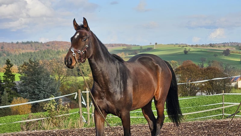 Z ciężkim sercem sprzedaję moją młodą klacz od Feliciano, z powodu braku czasu i uwagi, które mogłabym jej jeszcze poświęcić, a na które zasługuje. Kupiliśmy ją w 2023 roku na Aukcji Elitowych Foal w Darmstadt. Ma przyjazny, szczery charakter i jest bardzo przywiązana do ludzi. Finchen nigdy nie była złośliwa i zawsze okazuje szacunek oraz jest miła w kontakcie. Już od wczesnego wieku zaczynaliśmy z nią pracę od ziemi. * Zdrowa * Zna stajnię i obecnie jest w wolnym boksie * Potrafi prowadzić na lonży * Jest przyzwyczajona do kowala i załadunku * Potrafi wykonywać półparady na lonży * Zna siodło * Przechodzi przez plandeki, zna flagi, kałuże, tyczki itp. * Podstawowe chodzenie na lonży * Zna spacery, które pokonuje ciekawie, ale spokojnie * Regularnie szczepiona i odrobaczana W codziennym obchodzie jest prawdziwym skarbem!!! Sprzedajemy ją wyłącznie w odpowiedzialne, pferdegerechte ręce. Jeśli szukasz wspaniałej klaczy do samodzielnego wykształcenia, z uczciwym charakterem i jasną głową, chętnie się z nami skontaktuj, aby ją poznać. W przypadku poważnego zainteresowania chętnie wyślę dodatkowe zdjęcia i dopasowane wideo z pracy od ziemi. Sprzedawana wyłącznie w najlepsze ręce!