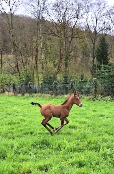 Cayenne è una bella puledra di un anno, costruita correttamente, con un carattere coraggioso. È molto affettuosa verso le persone, non ha vizi e si comporta bene dal maniscalco. Sua madre, Escada, ha numerose posizioni e vittorie in concorsi di salto e salto in stile di classe A e si è distinta per la sua eccellente capacità di montaggio. Il padre, Cashmere, è stato vicecampione del Bundeschampionat nel 2020 per i cavalli da salto di 5 anni e attualmente ha posizioni nella classe S*. Cayenne è adatta per il salto e il completo, così come come compagna per il tempo libero e migliore amica, oltre che per la riproduzione.