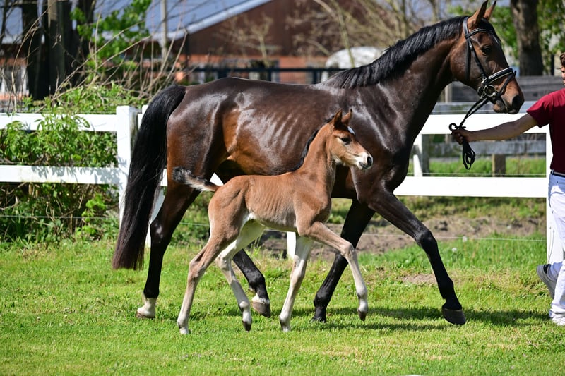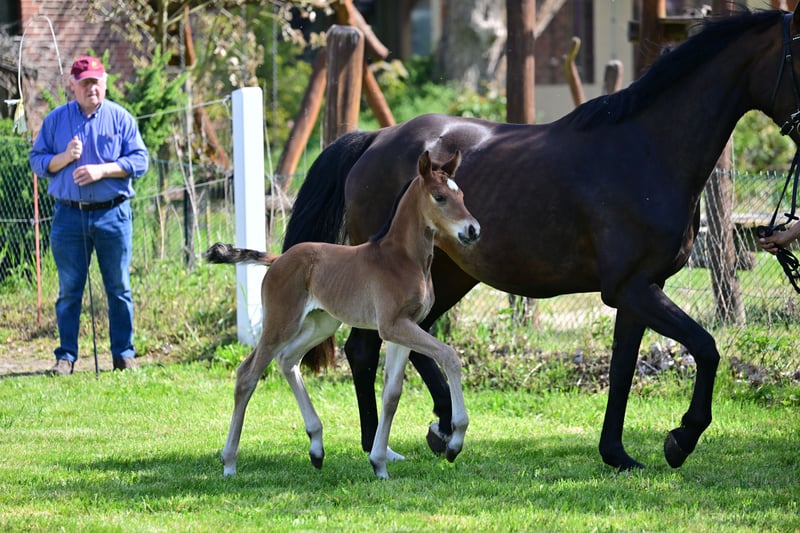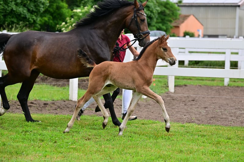 Młoda klacz o mocnym typie i ruchu *2024 po Va Bene od znakomitej ringowej klaczy StPr Escarina B po Escolar od znakomitej ringowej klaczy StPr Farina B po Fürstenball - Sir Donnerhall I Ta urocza młoda dama z wyjątkowej linii żeńskiej została już czempionką klaczek na pokazie źrebiąt organizowanym przez Havelland Horse Breeding Association. Uhonorowana jako źrebię premium i czempionka. Ojciec Va Bene: jest wschodzącą gwiazdą hodowli koni ujeżdżeniowych, już teraz imponuje świetną jezdnością na poziomie zaawansowanym i jest seryjnym bestsellerem na aukcjach źrebiąt ze względu na wybitny ruch swojego potomstwa. Matka Escarina B: Otwarta czempionka, zwyciężczyni księgi klaczy, umieszczona w testach dla młodych koni wierzchowych, uhonorowana jako klacz premii państwowej, genialna klacz ringowa na pokazie premii państwowej 2022 w Prussendorfie. Wnuczka Farina B: Czempionka klaczy z wpisem do księgi, zwyciężczyni SLP w ujeżdżeniu, wspaniała klacz ringowa pokazu stanówkowego 2014 w Prussendorfie, zwyciężczyni testów dla młodych koni wierzchowych, zwyciężczyni ujeżdżenia A, ujeżdżenie L zajęte, ujeżdżenie L wygrane, półsiostra ujeżdżeniowego sukcesu Florida Keys/Moritz Treffinger Hodowla na miejscu u hodowcy byłaby możliwa