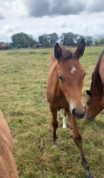 Daylily DON MARTILLO x ROYAL CLASSIC II - ARGENTINUS - LANDADEL - CALYPSO II - GRAPHIT - GOTTHARD - SERMON A stunning filly / foal born in March 2024, sired by the former World Champion of Young Dressage Horses out of a mare with an excellent pedigree, from which many successful sport horses have descended. Daylily is very people-oriented, familiar with leading and farrier work. She has very good movement, with the trot especially standing out. Daylily is registered as a German sport horse, located in Verden (Aller), and is raised in a small group with other foals. For inquiries, please contact: Tel.: 015236396965