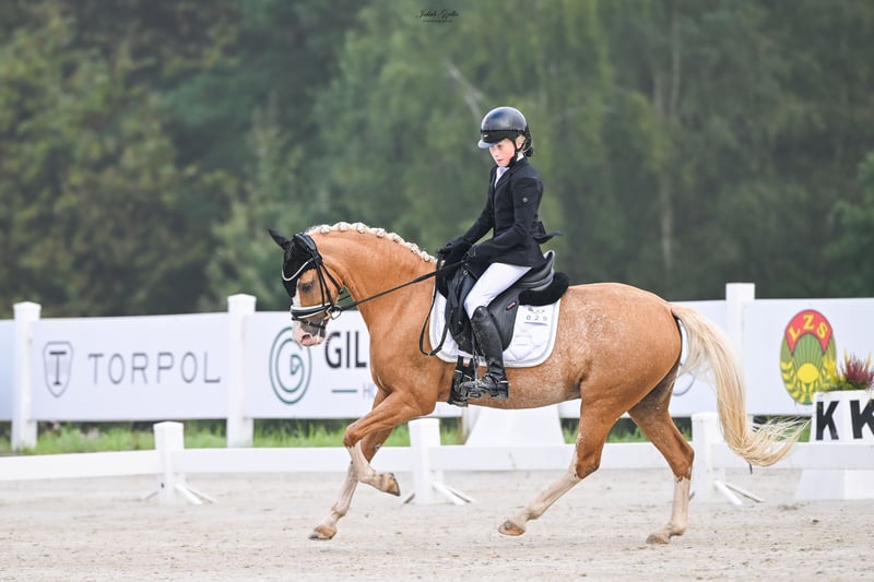 For sale: German Riding Pony (DRP) mare, born on May 26, 2024, sired by Herzgold D. Herzgold D is renowned for its excellent movement mechanics, outstanding dressage ability, and exceptional character, which it passes on to its offspring. The dam is a Welsh Sec C mare. She has successfully begun her sporting career, providing her foal with plenty of calmness, confidence, and early success, including two championship titles won in 2025 (Pomorskie Province Indoor Championships and Pomorskie Championships in Dressage). The offered mare combines excellent pedigree, strong movement predispositions, and a balanced temperament. Trained in basic riding, she is eager to cooperate with humans, making her an ideal candidate for sport or breeding. She holds a German passport and DNA testing confirming her lineage. (See photo of the sire, No. 3; photo of the dam, No. 4) For more information, please contact me.