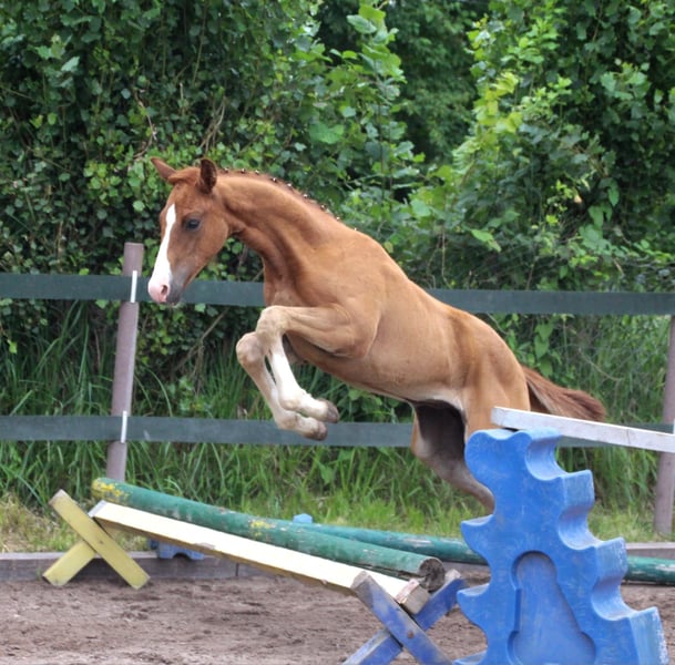 Elegante zweijährige Stute. Schick mit vier weißen Beinen. Nur in fördernde Hände zu verkaufen. Sehr brav im Umgang. Regelmäßig beim Schmied. Wächst in kleiner Herde mit einem gleichaltrigen Fohlen und 3 älteren Stuten auf.