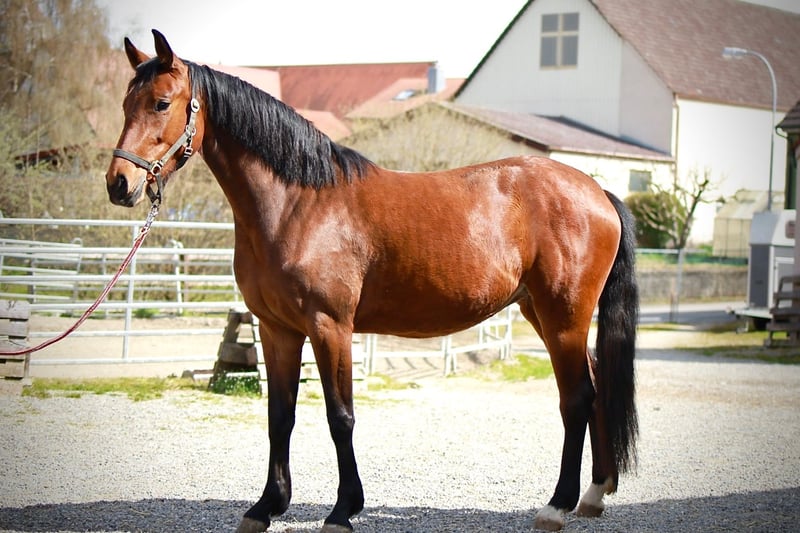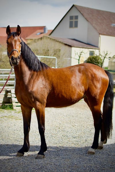 Typvolle Nachwuchsstute „Diva“ – Goldfohlen, aus eigener Zucht & unverbraucht Mit Diva bieten wir eine wunderschöne 3-jährige Jungstute aus eigener Zucht an, die bei uns geboren und liebevoll aufgewachsen ist. Sie wurde als Goldfohlen prämiert, was ihre Qualität und ihr Potenzial bereits im Fohlenalter unterstreicht. Mit ca. 156 cm Stockmaß ist sie zwar eher kompakt, überzeugt aber durch ihre harmonische Erscheinung und ihr korrektes Fundament. Im täglichen Umgang zeigt sich Diva absolut brav, aufmerksam und menschenbezogen – ein Pferd, das einfach Freude macht. Ihr Name passt eigentlich nicht zu ihrem lieben Wesen. Sie ist noch roh und somit die perfekte Partnerin für alle, die sich ihr Pferd selbst ausbilden und eine echte Verbindung aufbauen möchten. Hufschmied ist für sie kein Problem. Auch ihre Abstammung spricht für sich: Über Don Diarado vereint sie leistungsstarkes Springblut (Diamant de Semilly x Corrado I) mit bewährten Linien wie Caretino und Conway II, die seit Jahren für Qualität und Rittigkeit stehen. Diva ist gesund, altersentsprechend aufgewachsen und komplett unverbraucht – bereit für ihre Zukunft unter dem Sattel. Wir geben sie schweren Herzens ab, da sie für unsere Zucht zu klein bleibt. Preis: 6.500 € VB Ein tolles Nachwuchspferd für jemanden, der Qualität, Charakter und Abstammung zu schätzen weiß.