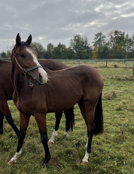 Unfortunately, due to a pasture accident during foalhood, he is being offered at a significantly reduced price. (Hahnentritt pattern) From my own experience, this may potentially improve again over time. Since foalhood, his condition has already improved with growth and movement. For interested breeders: Top Holsteiner dam line Licensed stallions and internationally successful offspring at 16.1 hh Please feel free to contact me at 015256833108 if you're interested.