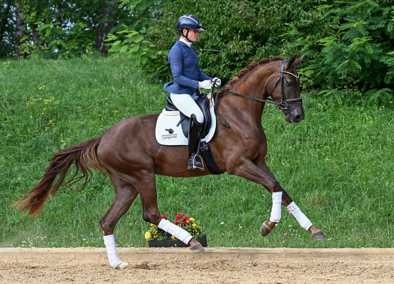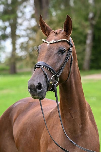 Hier geht's zur Kollektion und Online-Registrierung: https://auktion.pzvbw.de/auctions MwSt. 7,8 % Sportive Dunkelfuchsstute mit großem Format in allen Belangen! Drei Top Grundgangarten sind hier gepaart mit besten Reiteigenschaften. Reitpferdeprüfungen hochplatziert – Vizelandeschampionesse in Bayern – nominiert zum Bundeschampionat. Stunning live chestnut with great points in every respect! Three top gaits are combined with excellent riding qualities. Highly placed in young horse riding classes – Vice State Champion in Bavaria – nominated for the Bundeschampionate.