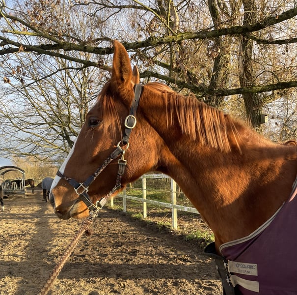 Se ofrece una yegua roana de aspecto deportivo, llamativa, con un marcado patrón de color y excelente predisposición para el salto. La yegua de tres años desciende de Oganero P y, por parte de madre, proviene de una línea probada de Prinz Romadour – Prinz Oldenburg. La potranca está inscrita en el libro genealógico del PZVBA. Completó su prueba de rendimiento para yeguas con una sobresaliente puntuación global de 8,01 (puesto 6 de 23). En el trato diario, la yegua muestra una actitud cercana a las personas, es fuerte de nervios y muy dispuesta a trabajar. Incluso en campo, a pesar de su juventud y poca experiencia, se muestra tranquila y segura. Un talento en ciernes para deporte, ocio y/o reproducción. Por una pequeña imperfección, se ofrece a un precio muy reducido y solo en Teléfono: 0179 / 754 2321
