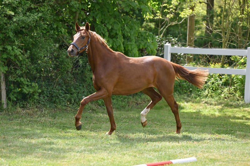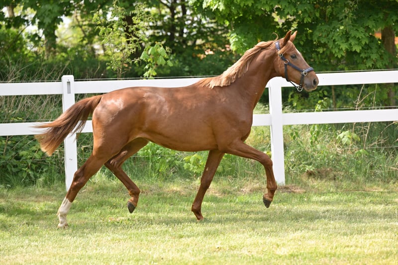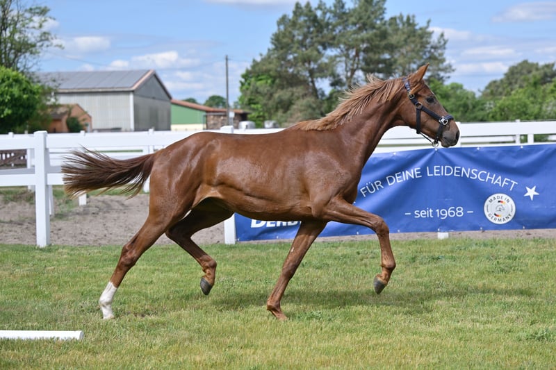 With Va Bella B, a very typy and athletic two-year-old mare with a special pedigree is presented. Sire Va Bene is currently in the spotlight due to his outstanding foal crops and his own successes in dressage at the S*** level. Dam Staatsprämienstute Florencia B was a free-running champion, SLP reserve winner, and won bronze at the association championship for three-year-old riding horses. She was nominated for the Bundeschampionat. She has two licensed brothers, and other sisters have also been awarded the state premium. Half-sister StPr Raffaela B was an SLP winner, competed successfully in dressage at the M level, and became the association champion; her son DSP Fürstano B was the DSP Youngster Dressage Champion in 2022 and is currently successful at Grand Prix level. Granddam StPr Patra B completed her SLP with a score of 8.52 and was successful in dressage at the L level. Her brother Ravel by Rubinstern Noir was successful in S dressage. From the dam line, there are several licensed stallions and horses successful in S dressage. VIDEO can be sent upon request via WhatsApp.