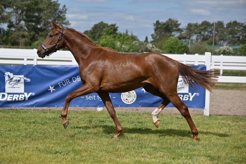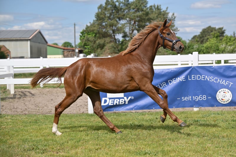 Mit Va Bella B präsentiert sich eine äußerst typstarke und bewegungsstarke zweijährige Stute mit besonderer Abstammung. Vater Va Bene ist aktuell in aller Munde aufgrund seiner herausragenden Fohlenjahrgänge und auch seinen eigenen Erfolgen in der Dressur S***. Mutter Staatsprämienstute Florencia B war Freilaufchampionesse, SLP-Reservesiegerin und gewann Bronze beim Verbandschampionat der 3jährigen Reitpferde. Sie war nominiert zum Bundeschampionat. Sie hat zwei gekörte Brüder und weitere Schwestern wurden ebenfalls mit Staatsprämie ausgestattet. Halbschwester StPr Raffaela B war SLP-Siegerin, Dressurpferde M erfolgreich und wurde Verbandschampionesse, ihr Sohn DSP Fürstano B war in 2022 DSP-Youngster Dressurchampion und ist aktuell Grand Prix- siegreich. Großmutter StPr Patra B legte ihre SLP mit 8,52 ab und war Dressurpferde L erfolgreich. Ihr Bruder Ravel v. Rubinstern Noir war S-Dressur erfolgreich. Aus dem Mutterstamm mehrere gekörte Hengste und S-Dressur erfolgreiche Pferde. VIDEO kann auf Anfrage per WhatsApp verschickt werden.