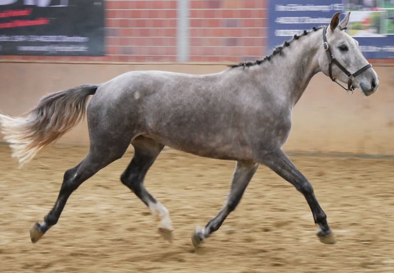 Name: Claudia Age: Born July 7, 2021 Gender: Mare Height: 15.0 hh Breed: German Sport Horse Pedigree: Cayton von Calido x Cascadello I by Casall Training Status: Lunged A double-competent mare with excellent gaits and a fantastic jumping style. For more information, please contact: 0176 62495567