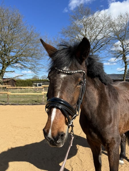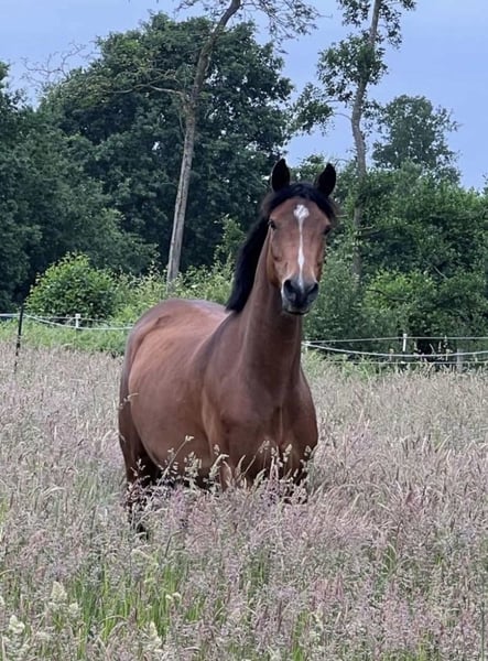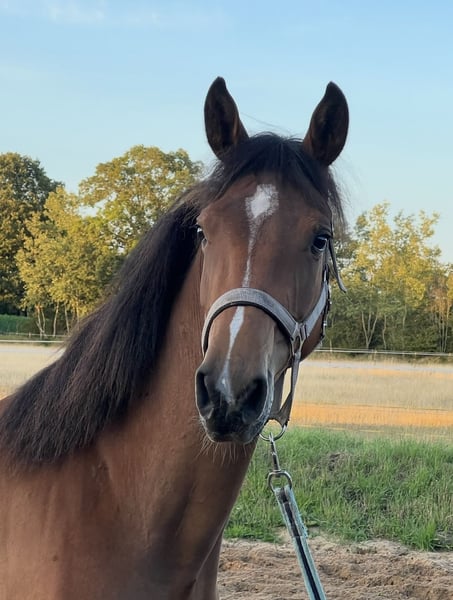 À vendre, notre magnifique Daily. Daily est une jument de petite taille qui a grandi en bonne santé au sein d'un troupeau. Elle maîtrise toutes les bases et a déjà été longée et préparée pour le monte. Elle a été régulièrement vermifugée et a consulté le dentiste. Son caractère se distingue particulièrement. Toujours claire et honnête, elle est très facile à manipuler. Elle est habituée à la fois à l'abri ouvert et à la vie en box. Actuellement, elle mesure environ 157 cm au garrot. Nous pensons qu'elle serait très bien adaptée pour le concours complet. Elle est enregistrée comme Cheval de Sport Allemand mais est issue de l'élevage holsteinois.