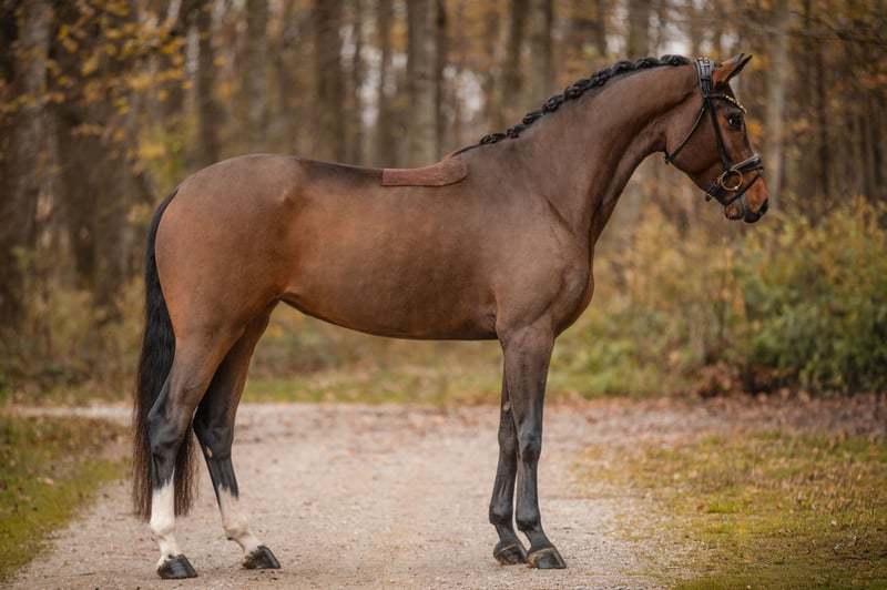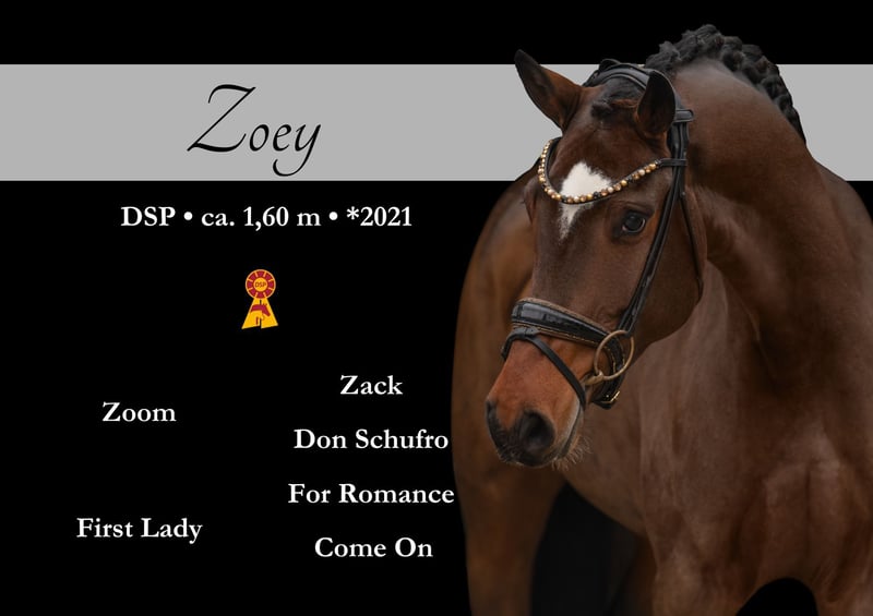 Dear Interested Parties, To arrange a test ride, please send me a WhatsApp message. For further questions, I am available during the day via WhatsApp, and you can reach me best by phone between 4 PM and 7 PM. I look forward to hearing from you. www.angelina-devittorio.de ⭐️Zoey⭐️ Age: 4.5 years (2021) Height: approximately 16.1 hh Pedigree: Zoom x For Romance I Training level: Well-started under saddle X-ray: Good radiographs available For sale is a compact, stunning daughter of Zoom out of a For Romance I mare, with three excellent basic gaits. Her outstanding qualities include a superb uphill canter, very good trot mechanics with plenty of rhythm and impulsion, and a steady, well-balanced walk with a good overstep. She is an extremely pleasant, uncomplicated horse, very gentle in handling and always people-oriented. She comes directly from the breeder, was gently and appropriately backed a few months ago. A super intelligent young horse with top-quality potential and excellent prospects for higher-level dressage. Absolutely suitable for amateurs, suitable for any rider at solid A-level, provided some experience with young horses. She has good radiographs and no prior health issues. A very elegant, compact mare with excellent conformation, outstanding basic gaits, and great potential for the future. ⚜️Phone: 0171-3438949 ⚜️a.devittorio@web.de ⚜️https://www.ehorses.de/angelinadevittorio Facebook and Instagram: Angelina De Vittorio