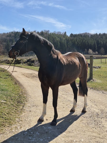 .Schöne 4-jährige Stute von Candid x Casparino – talentiert und entwicklungsfähig Aufgrund von Zeitmangel verkaufen wir unsere selbstgezogene 4-jährige Stute Candita in fördernde Hände. Candita wurde im letzten Jahr schonend angeritten und kennt sowohl Halle als auch Außenplatz. Aktuell steht sie aus zeitlichen Gründen nicht im Training und wird daher als junges, noch unerfahrenes Pferd verkauft – sie ist nicht für Anfänger geeignet. Sie überzeugt mit drei guten Grundgangarten sowie sehr schönem Freispringen und bringt damit eine solide Basis für die weitere Ausbildung im Sport mit. Ausbildung & Haltung: • angeritten • kennt Freispringen • kennt Führanlage • Herdenhaltung im Aktivlaufstall (Stutenherde) • barhuf • regelmäßig geimpft und entwurmt Candita ist ein vielversprechendes Nachwuchspferd und sucht einen liebevollen, fördernden Platz, an dem sie weiter ausgebildet werden kann. 🎥 Videos senden wir gerne per WhatsApp zu. Bei Interesse freuen wir uns über einen Anruf oder eine Nachricht für weitere Informationen